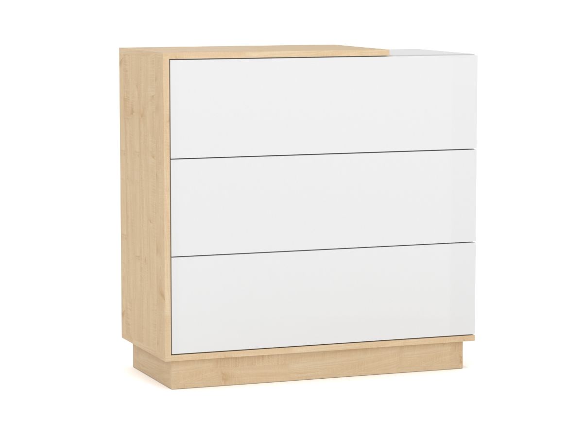 В комплектации три выдвижные ящика, которые позволят разместить в них все нужные вещи и аксессуары. Каждый ящик оснащен механизмом Push to open, благодаря которому они удобны в использовании. Комод достаточно прочный и устойчивый, чтобы быть использованным как самостоятельное изделие, но его также можно сочетать с другими товарами серии Коста.