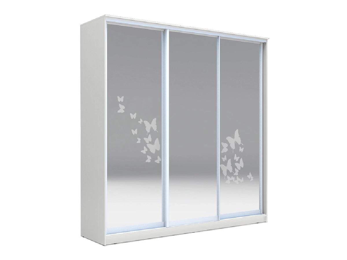 Данный шкаф, пользуется своей популярностью благодаря зеркалам с пескоструйным рисунком, которые установлены на трёх дверях. Зеркала также способны визуально увеличивать пространство в комнате и делать ее намного светлее. Благодаря системе купе, полностью отпадает потребность открывания больших дверей. Данная мебель полностью скроет все недостатки планировки комнаты, а ранее незадействованный участок квартиры, станет полезным и многофункциональным.