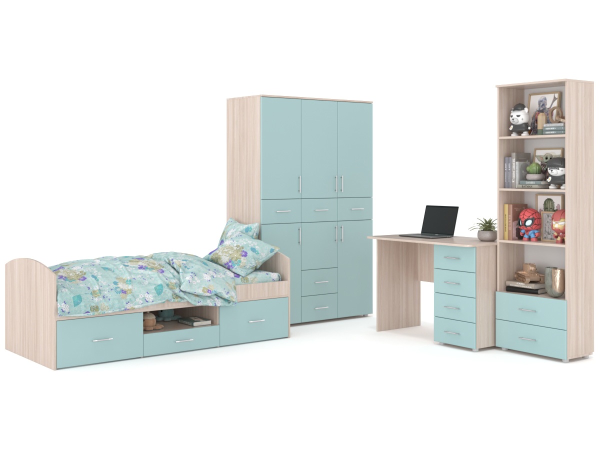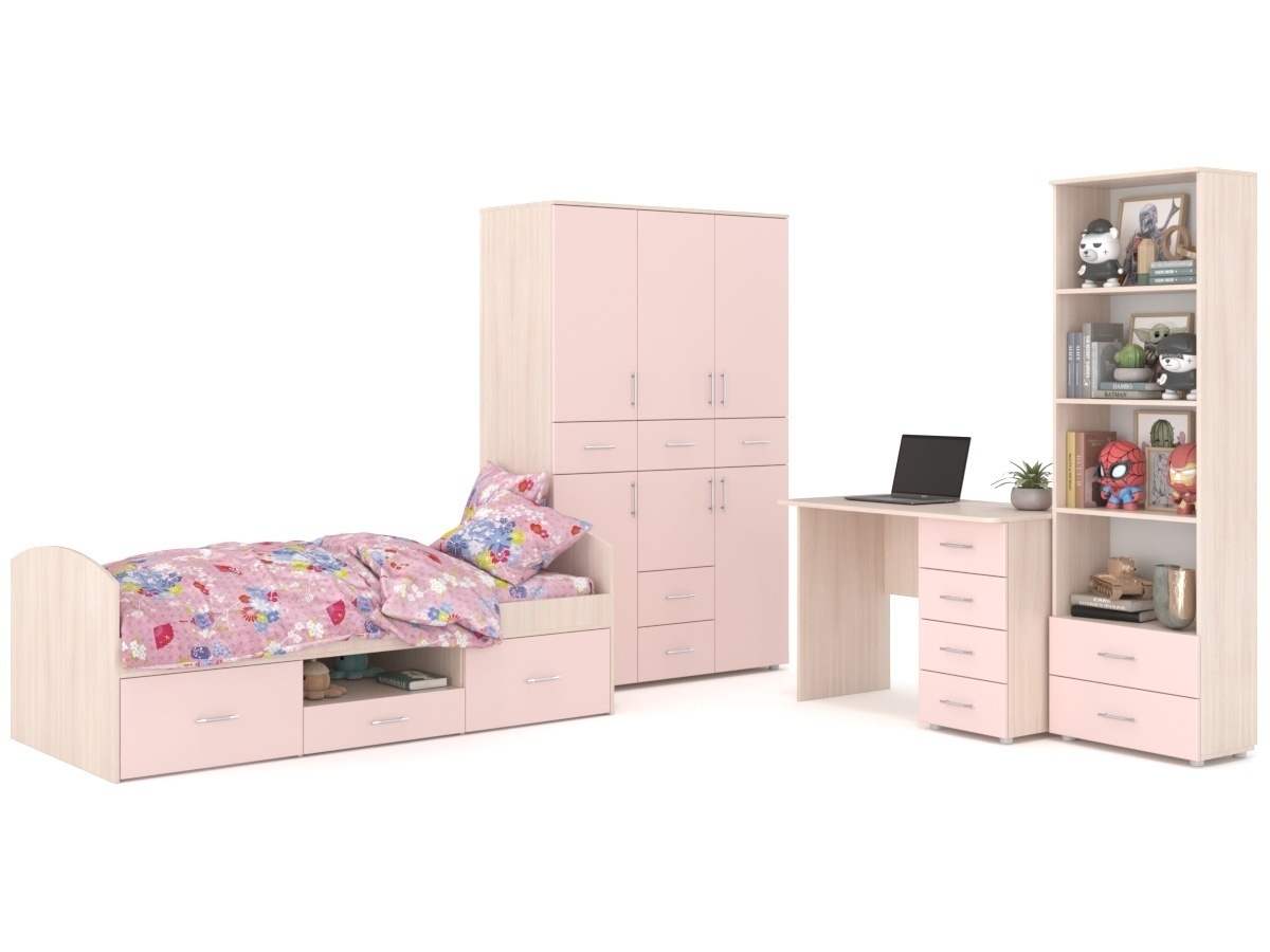 Детская стенка Глори 2 - идеально подойдет для установки в комнату подростка. Шкаф-стенка имеет много разных ящиков и шкафов, он очень вместителен. Пенал представлен выдвижными ящиками и открытыми полками, где можно разложить книги и учебники. Компьютерный стол оснащен тумбой для ученических принадлежностей. Есть отдельная навесная полка, шикарная кровать с выдвижными ящиками.