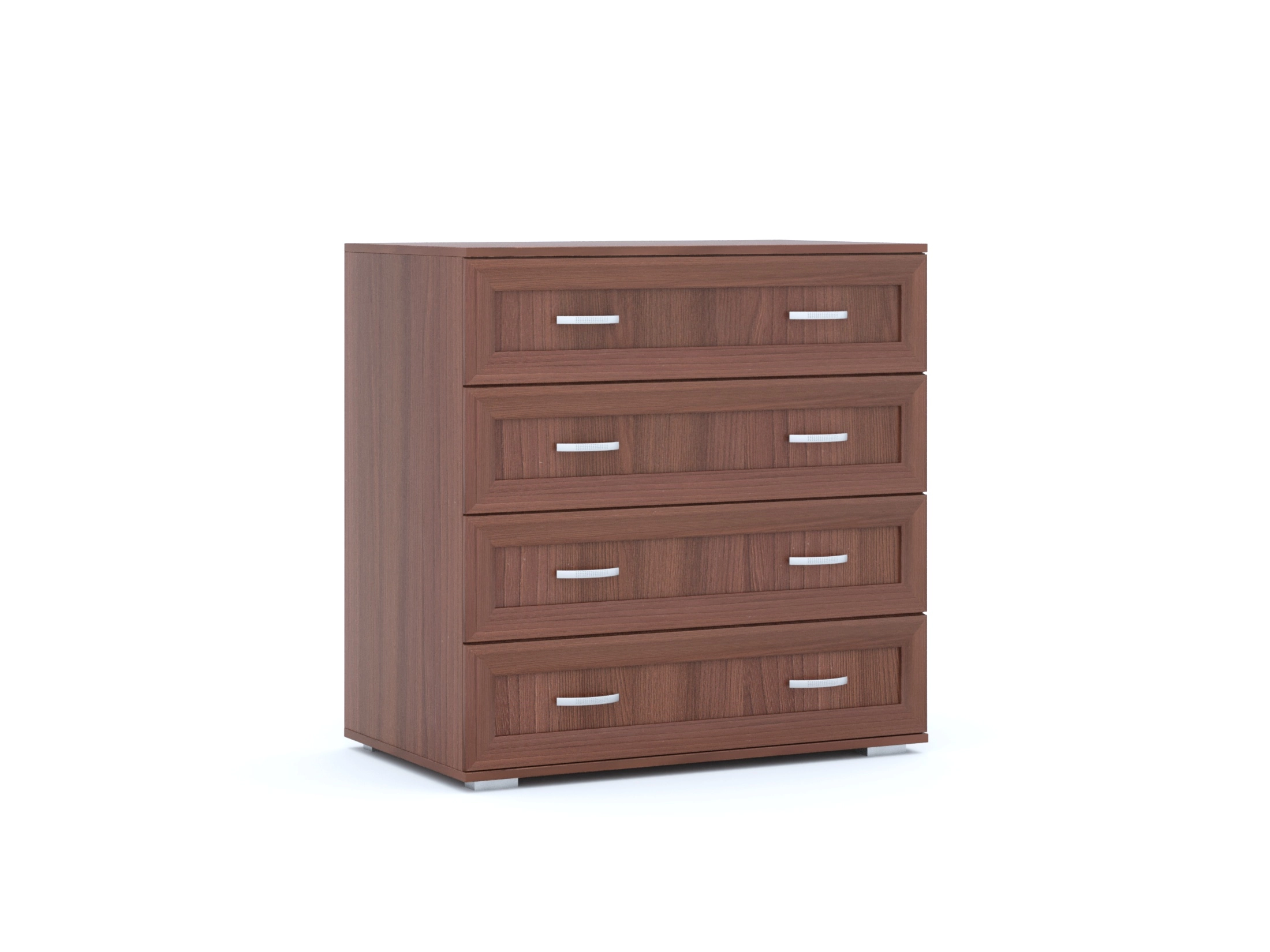Комод 4 – яркий представитель долговечных мебельных предметов, он оформлен в современном, но сдержанном стиле, который подойдет к большинству интерьеров спален. Эстетичный комод с четырьмя ящиками для хранения постельного белья и разной одежды.