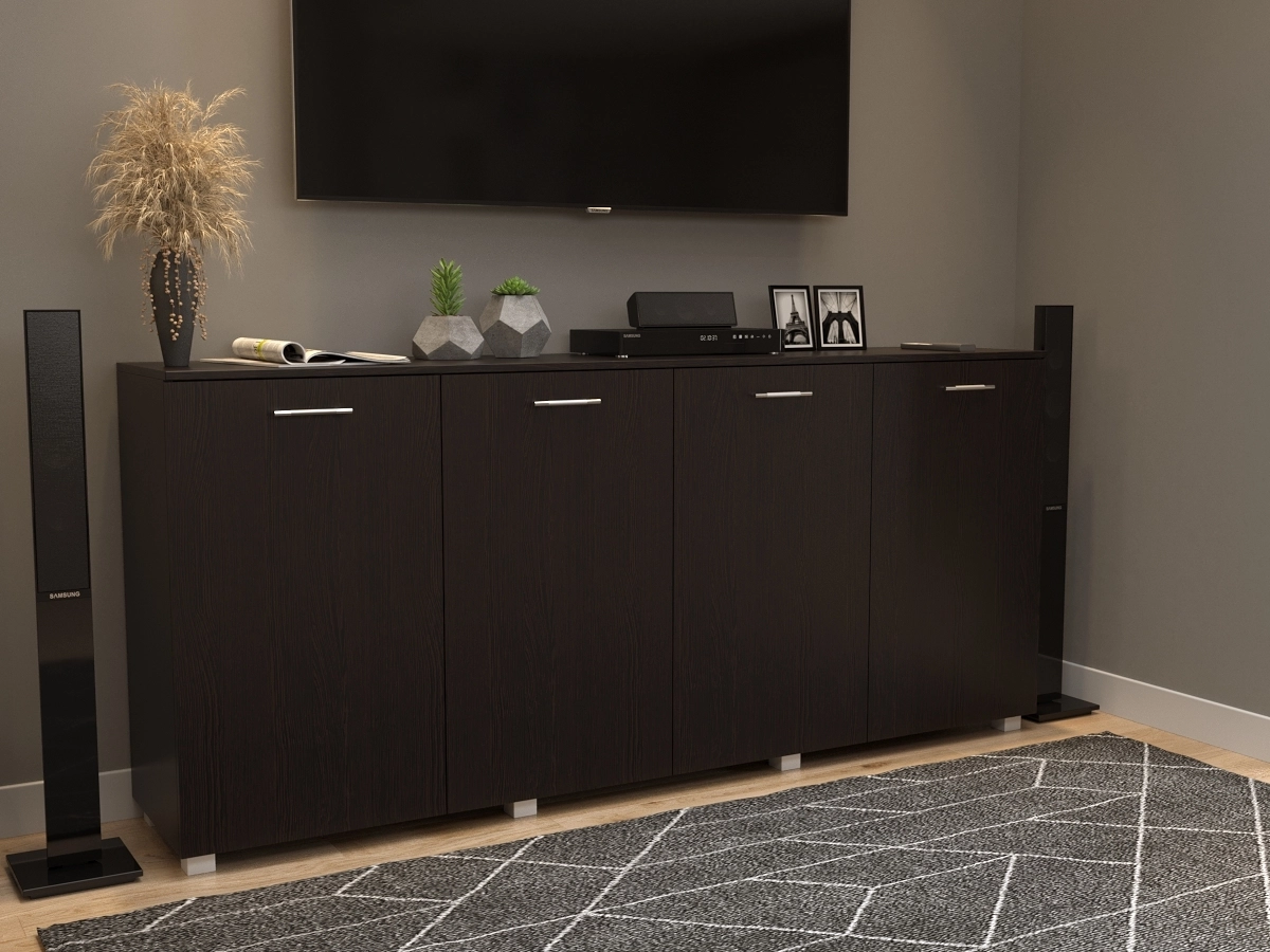 Комод Легенда – мебельный предмет установлен на высоких ножках. Конструкция состоит из четырех шкафов. Конструкция прочная, идеально подходит для повседневного использования. Широкий комод, в котором достаточно места для разных предметов, в том числе и первой необходимости. Комод будет соответствовать любому декору помещения.