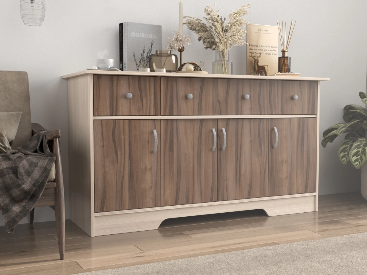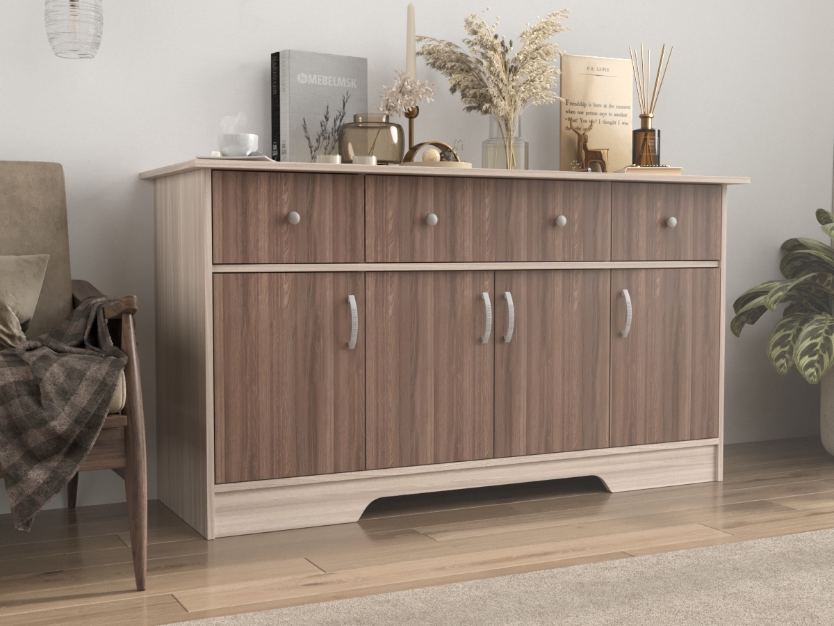 Комод Стенворд 12 - широкий прочный комод, который будет отлично смотреться в любой комнате. В трех просторных ящиках и трех шкафах, где два из них с одной створкой и один с двумя, вместится много белья и одежды. Уникальная система, предназначенная для хранения самых разных предметов и вещей.