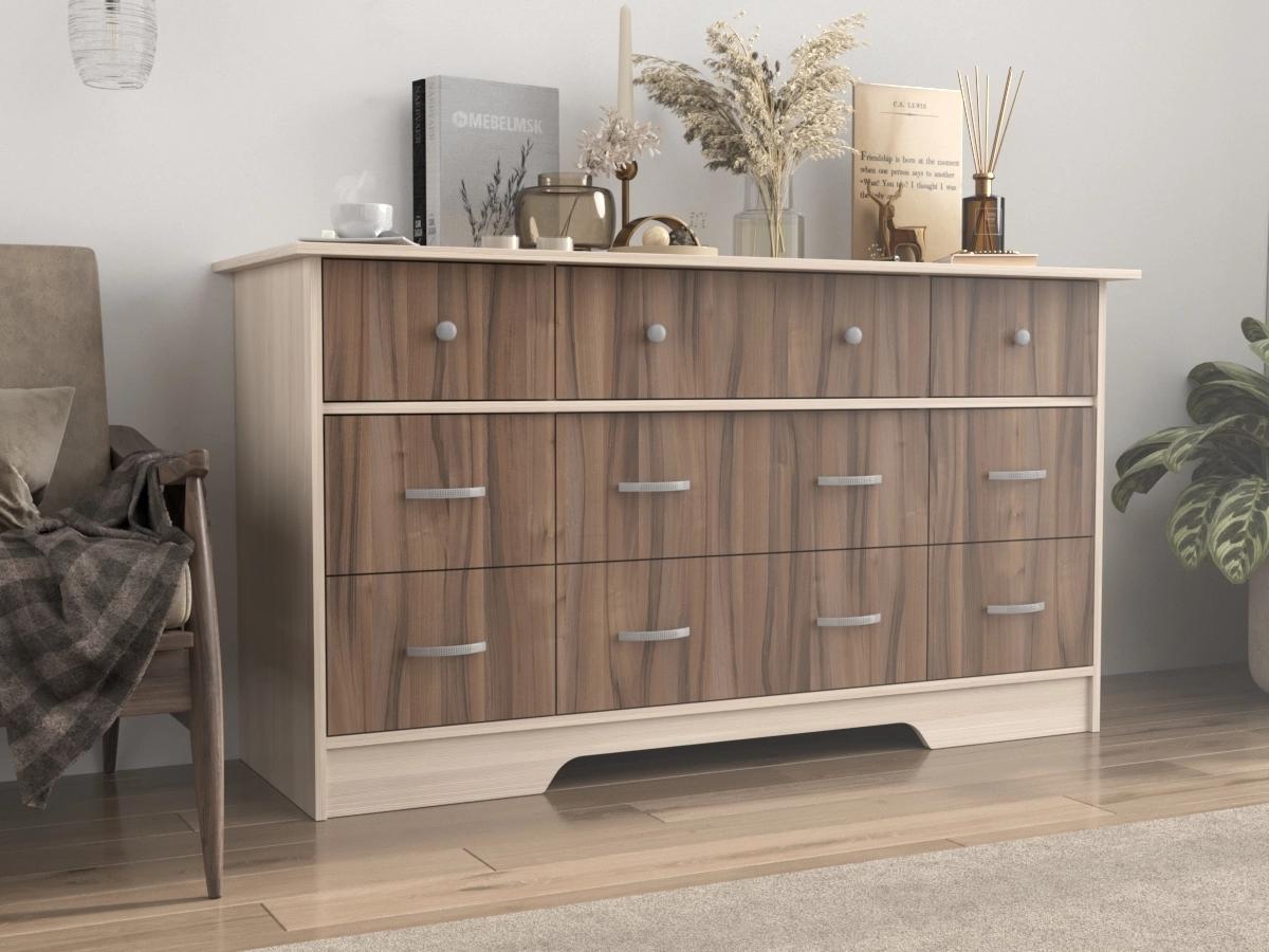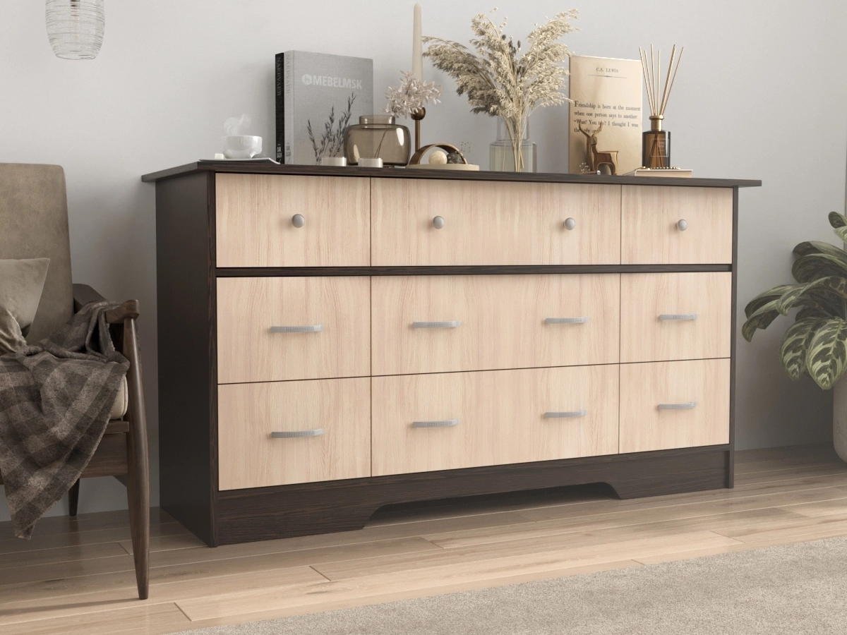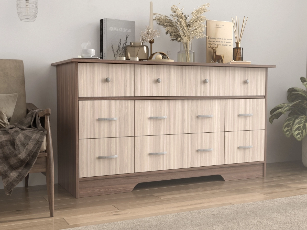 Комод Стенворд 16 – это комод с девятью ящиками, разными по вместительности. Уникальный внешний вид. Элегантный комод смотрится свежо и современно. Модель устойчивая и прочная. С помощью такого универсального комода можно решить любую проблему хранения вещей.