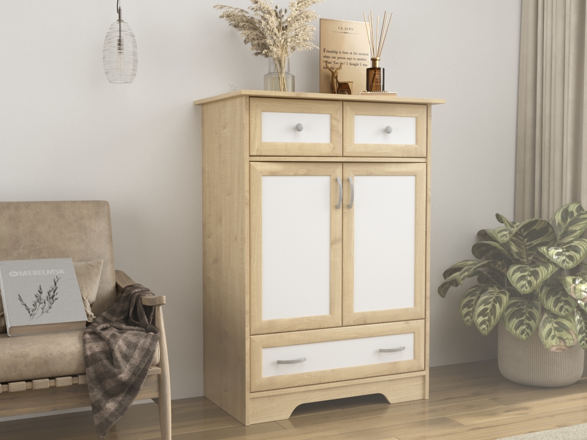 Комод Стенворд 5 - этот комод излучает некий шарм и станет центром притяжения для вашего интерьера. Тумба с выдвижными ящиками и шкафом изготовлена из ЛДСП. Этот материал не только способен выдержать большой вес вещей, но и выдержит износ временем. Этот красиво оформленный небольшой по размеру шкаф долговечен и привлекает внимание.