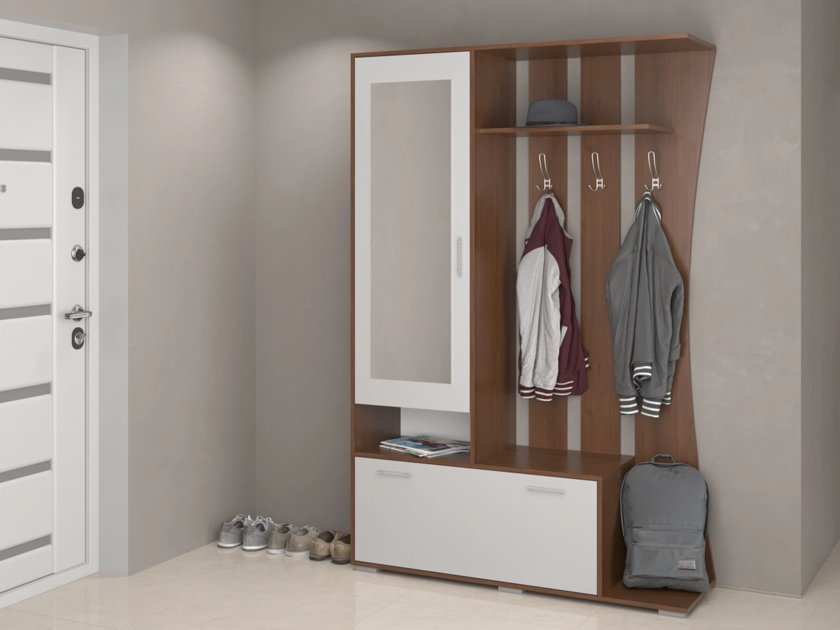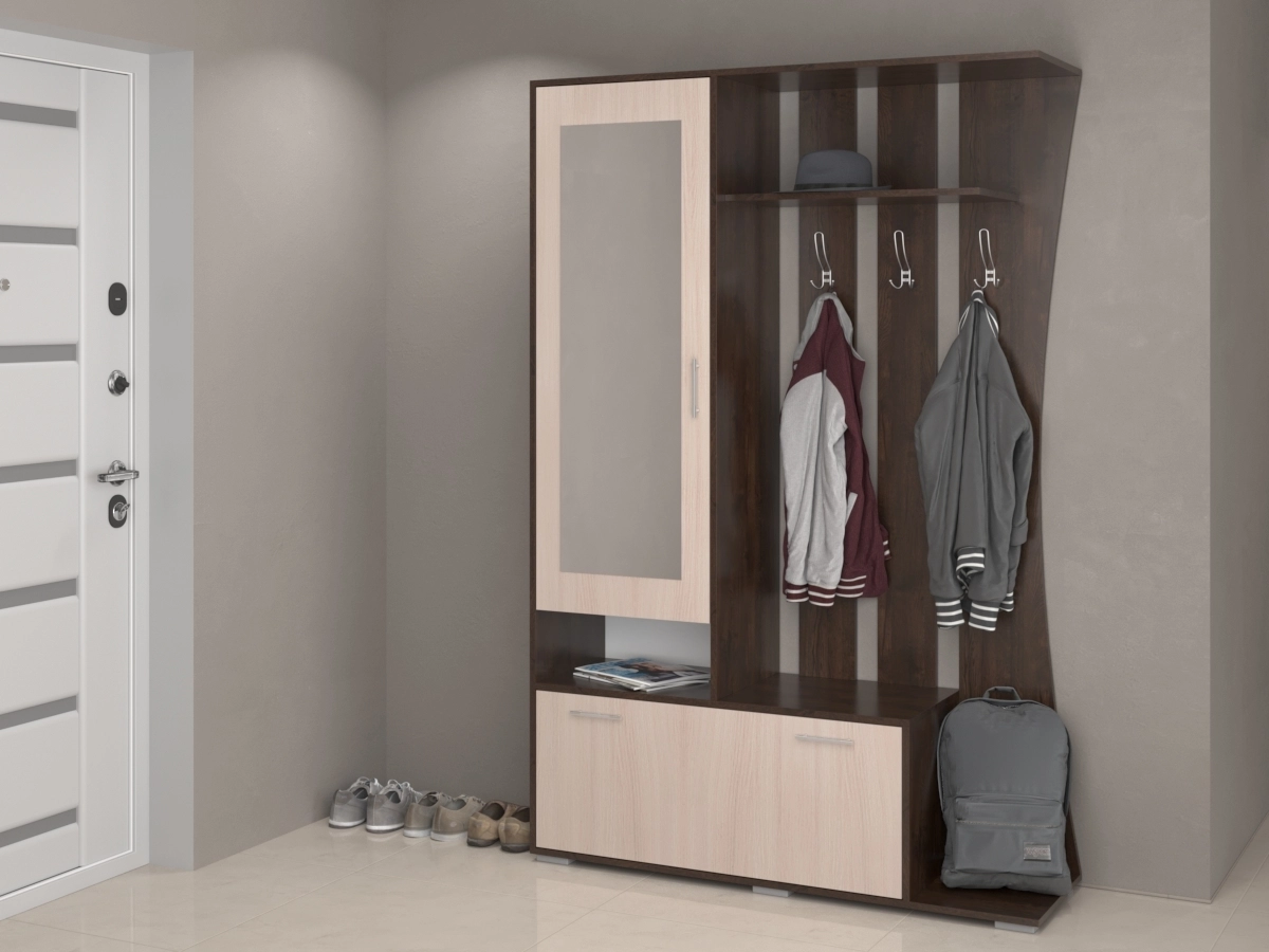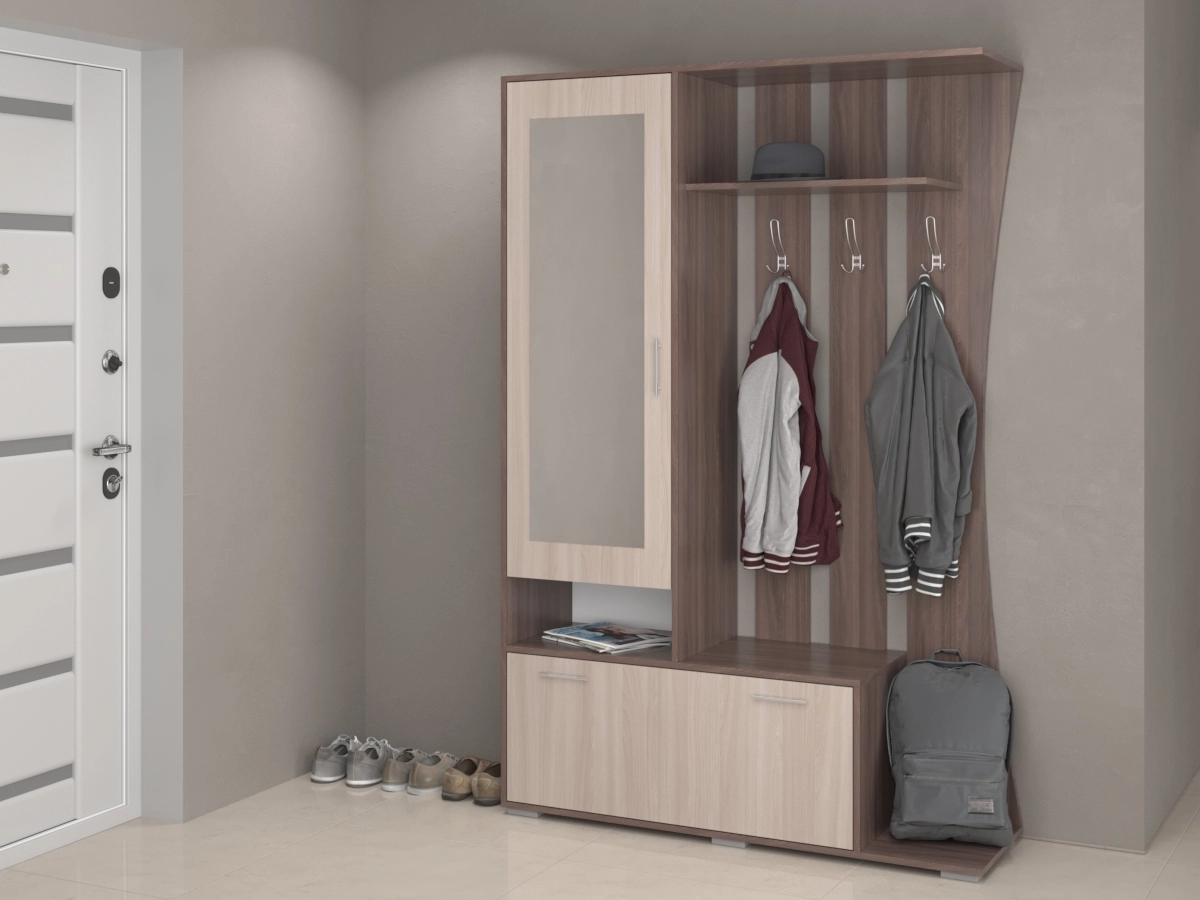 Легкая и практичная Прихожая Аэлита 1 обладает особым шармом, сочетающим в себе привлекательность с компактностью и продуманным размещением элементов гардероба. Прихожая изготовлена из ЛДСП.