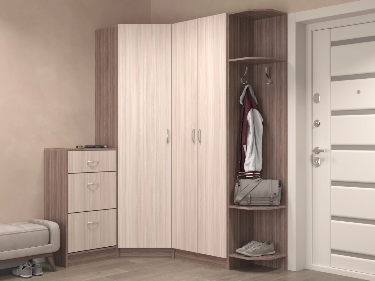 Представленная в нашем магазине Прихожая Ника-10, произведённая в классическом стиле, создаст уют и комфорт. Модель отличается компактностью и практичностью, изготовлена из ламинированного ДСП. Имеются угловой и платяной шкаф, открытая вешалка, а также тумба для обуви .