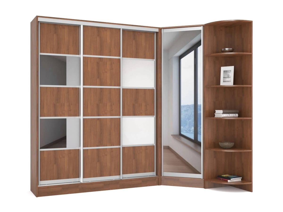 Шкаф-купе Композиция 88 – великолепная угловая композиция для квартиры или дома, на фасадах есть зеркала. Эта модель современная и стильная. Шкаф способен полностью удовлетворить потребности семьи в хранении самых разных вещей. Он достаточно высокий и может подойти для большого и небольшого пространства.
