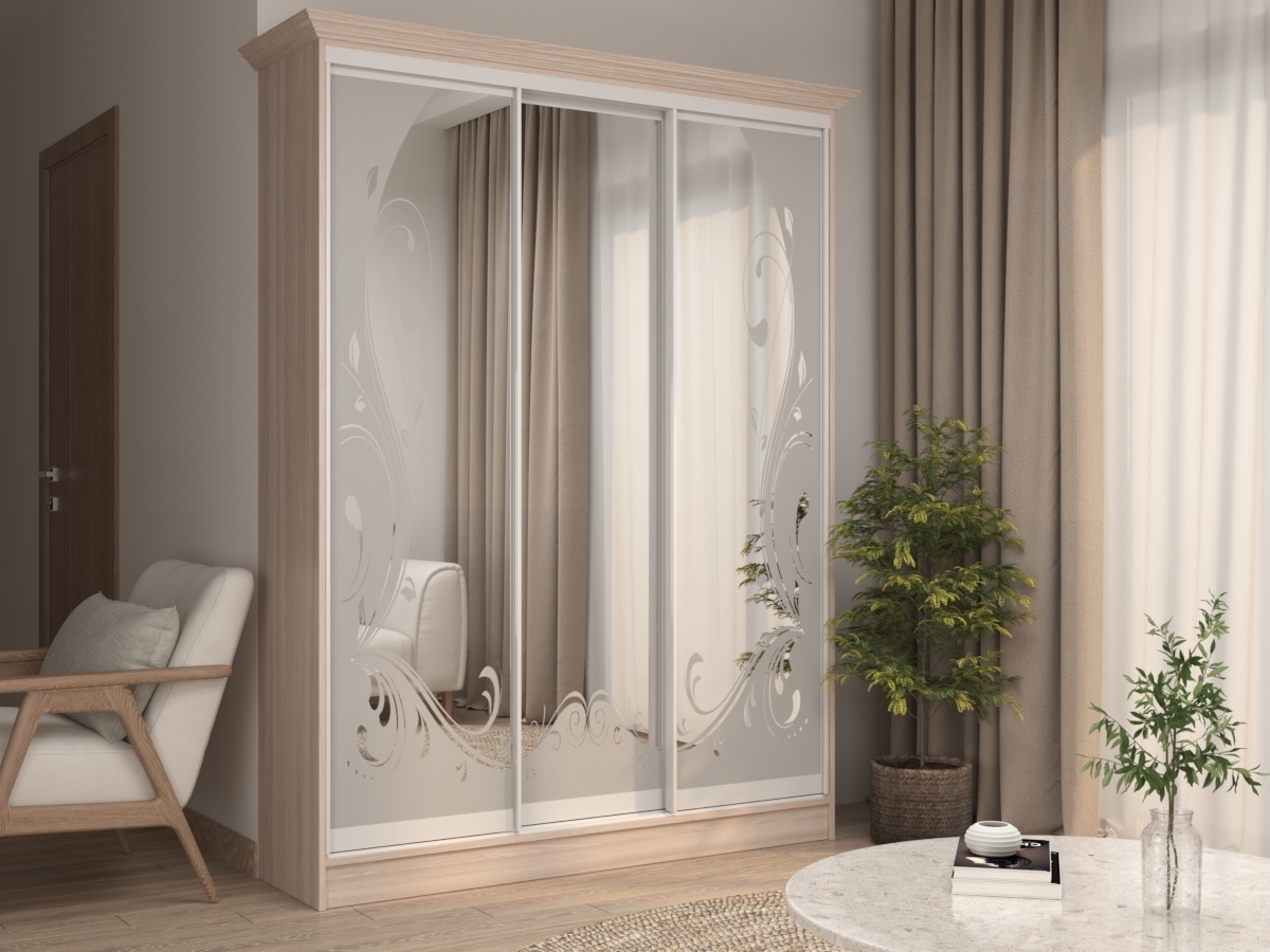 Шкаф-купе Концепт 26 – мебель, которая может быть установлена в различных комнатах. При ее виде можно ощутить легкость и непринужденность. Практичная модель имеет великолепный пескоструйный рисунок. Массивный шкаф невероятно вместительный, все вещи можно разложить по местам.