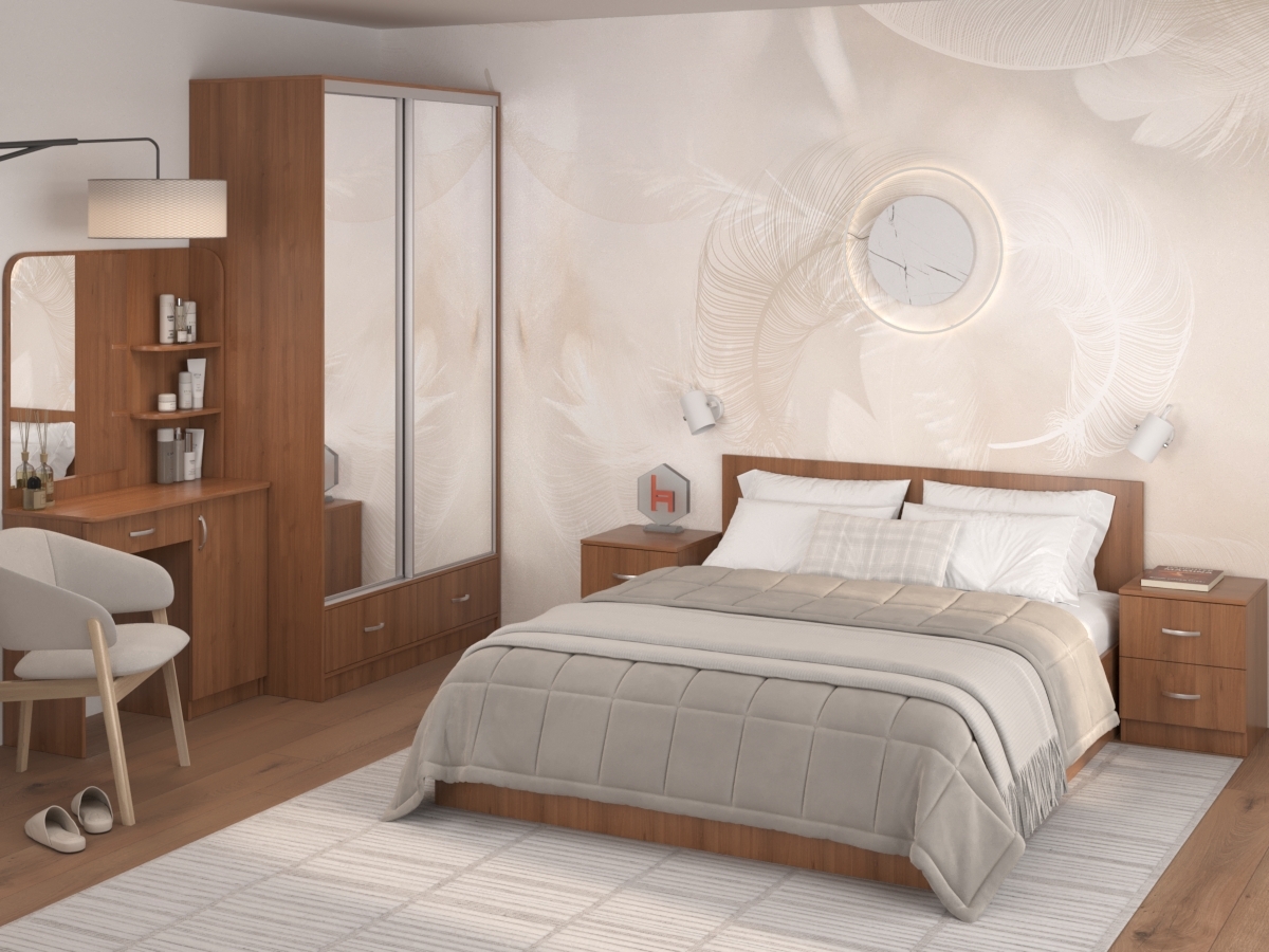 Спальный гарнитур Светлана 19 поможет создать уютную атмосферу. В набор входит туалетный столик, шкаф-купе, кровать и две прикроватные тумбы. Эта модель станет идеальным вариантом для ночного отдыха и вместит много одежды и белья. Чтобы купить Спальный гарнитур Светлана 19 по выгодным ценам, достаточно заполнить заявку на нашем сайте или позвонить по телефону 8 (495) 740-75-18
