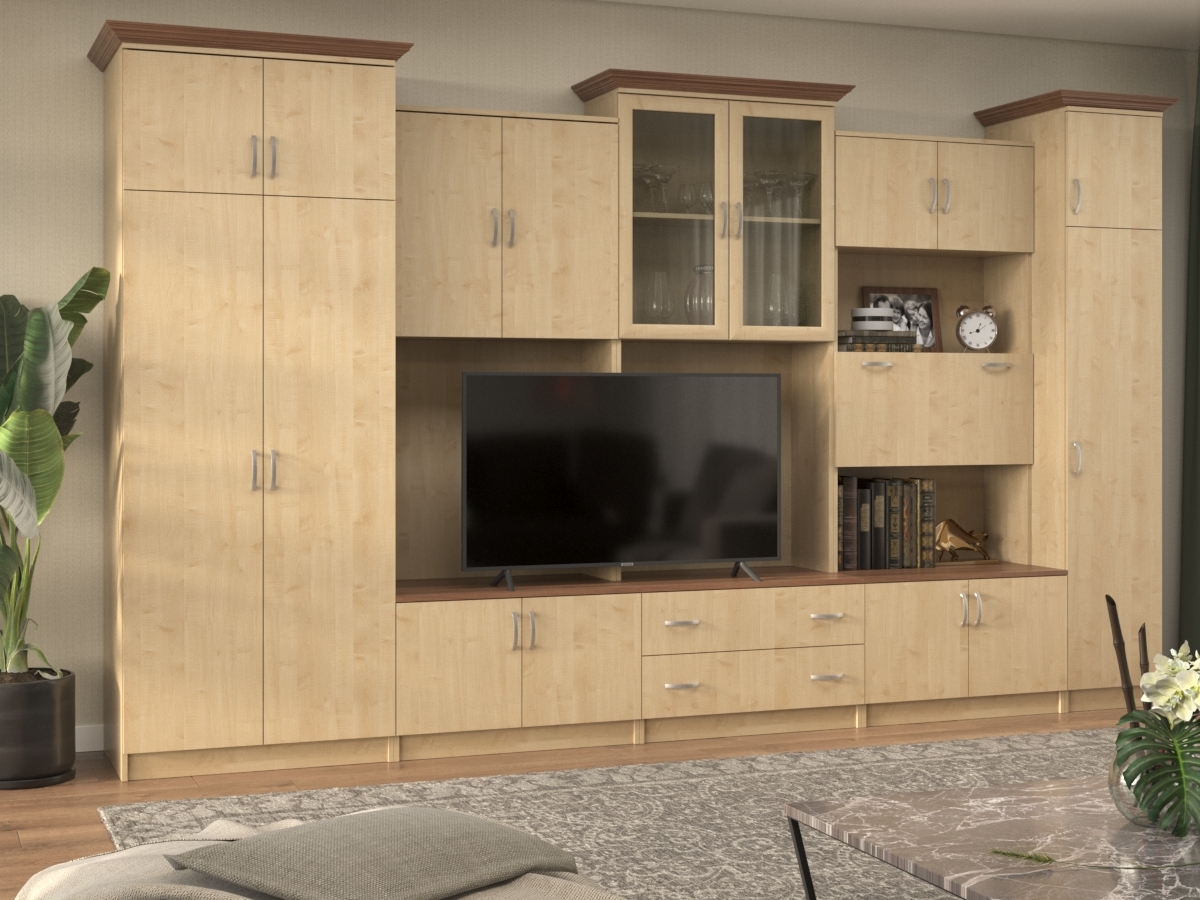 Стенка Композиция 10 — создает в пространстве удивительную атмосферу комфорта и уюта. Ее классическое исполнение позволяет мебели становиться гармоничным дополнением многих интерьеров. Разный по высоте уровень элементов, выступающие тумбы и лаконичность фасадов создают утонченный образ.