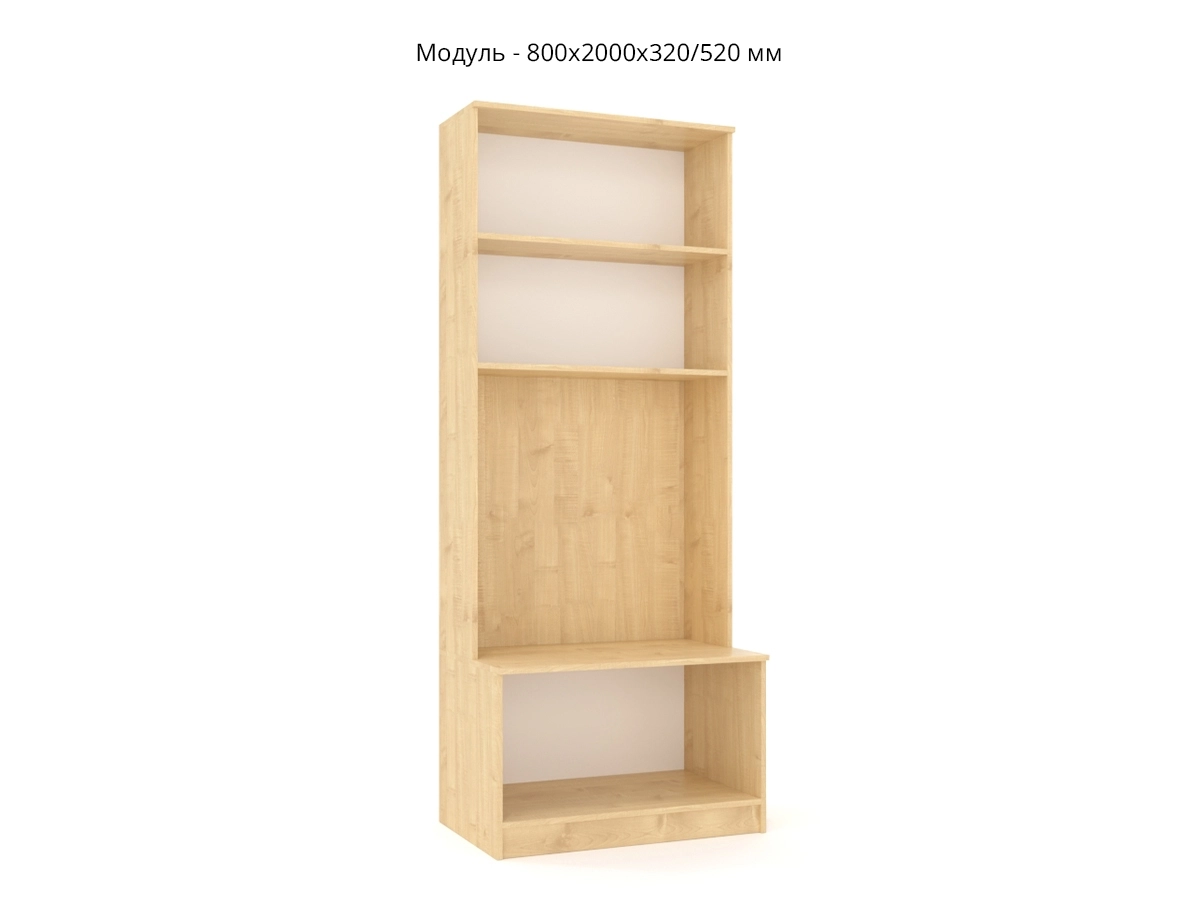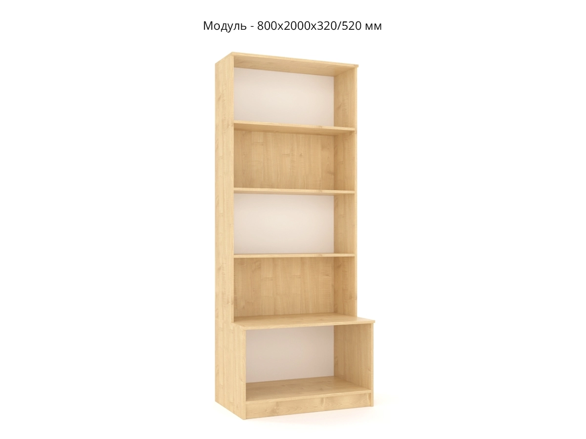 Стеллаж открытый с секретером: 800х2000х320 мм;