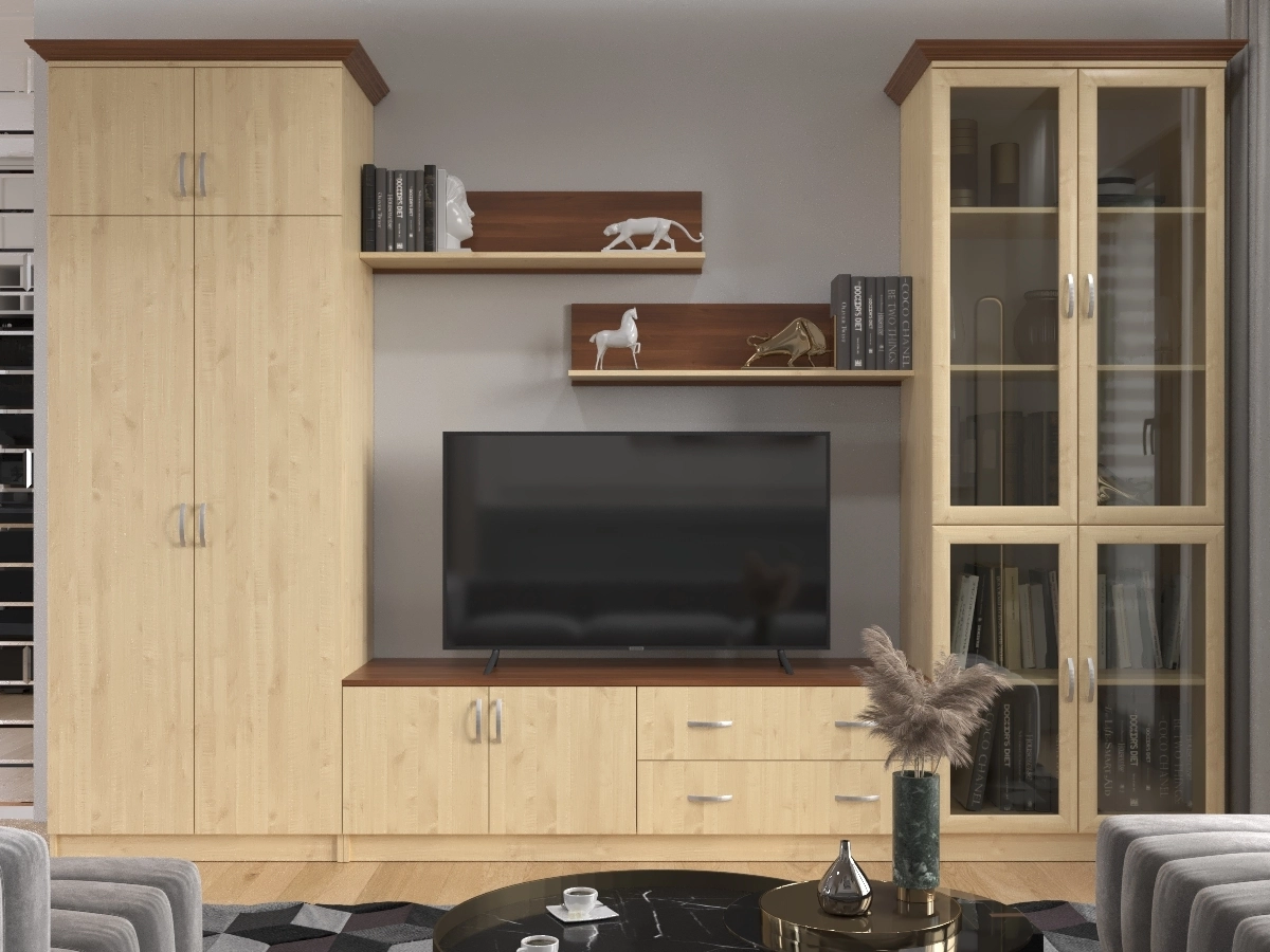 Стенка Композиция 7 — воплотила в себе сдержанную красоту классики и потрясающую вместительность. Разноуровневость модулей говорит об изысканности вкуса. Модель станет гармоничным дополнением просторных гостиных. На открытых полках разместятся книги и фоторамки, а закрытые шкафы помогут в комфортном ключе хранить разное.