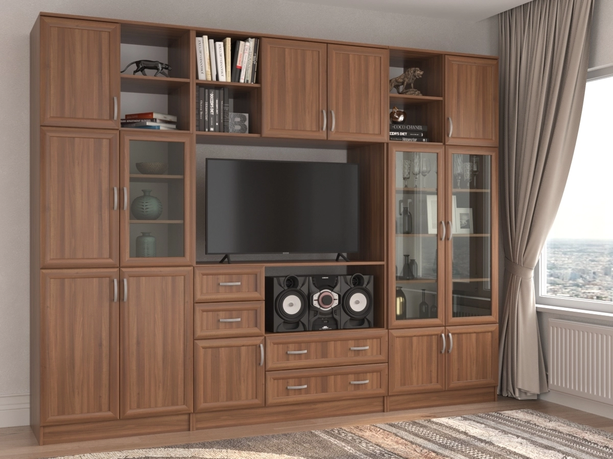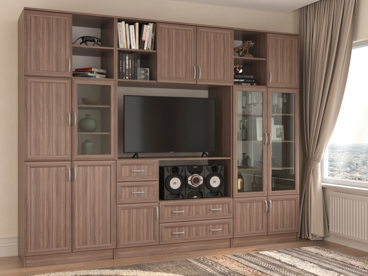 Изысканная Стенка Корсика, изготовленная в классическом стиле, позволит наполнить комнату атмосферой уюта и комфорта. Стенка оборудована разнообразными полками, где можно разместить книги, элементы декора. Также предусмотрена тумба под телевизор, выдвижные ящики для хранения различных вещей. У нас можно заказать стенку различных цветов и размеров.