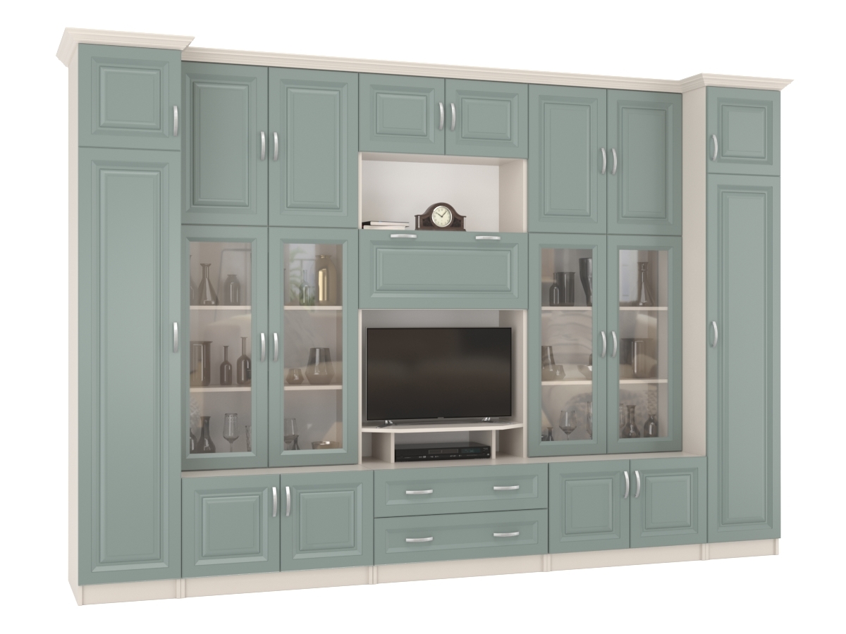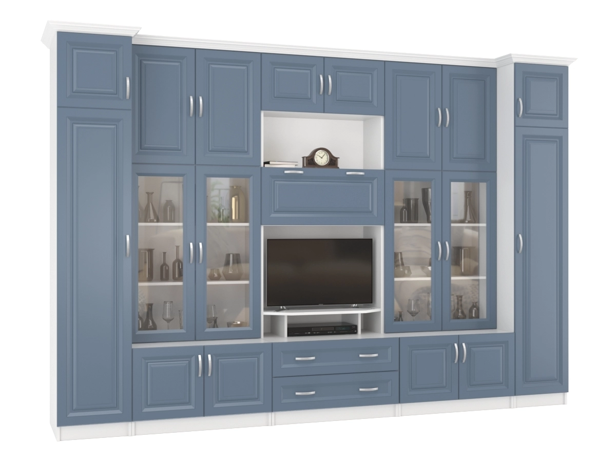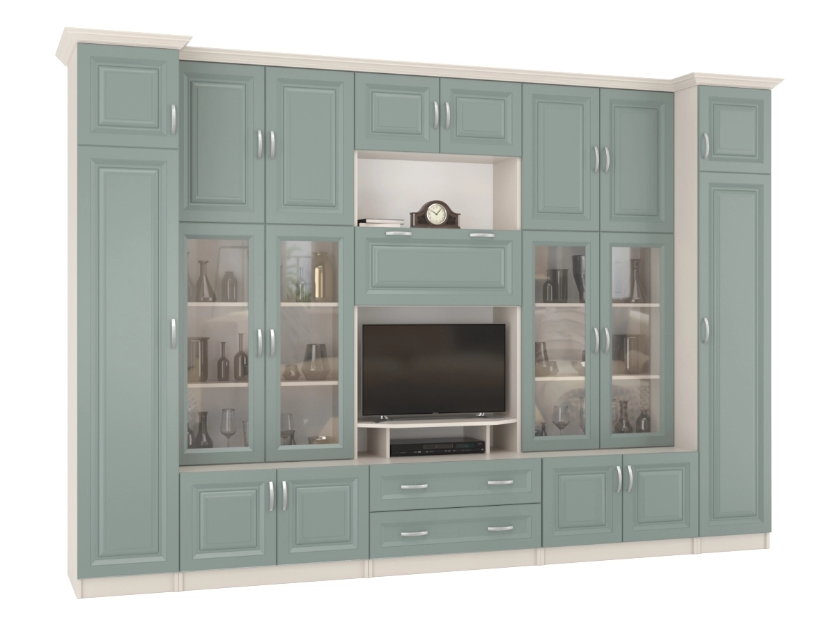 Изысканная Стенка Марина-7, изготовленная в современном классическом стиле, позволит наполнить комнату атмосферой уюта и комфорта. Стенка оборудована разнообразными полками, где можно разместить книги, элементы декора. Также предусмотрена тумба под телевизор, выдвижные ящики для хранения различных вещей. У нас можно заказать стенку различных цветов и размеров.