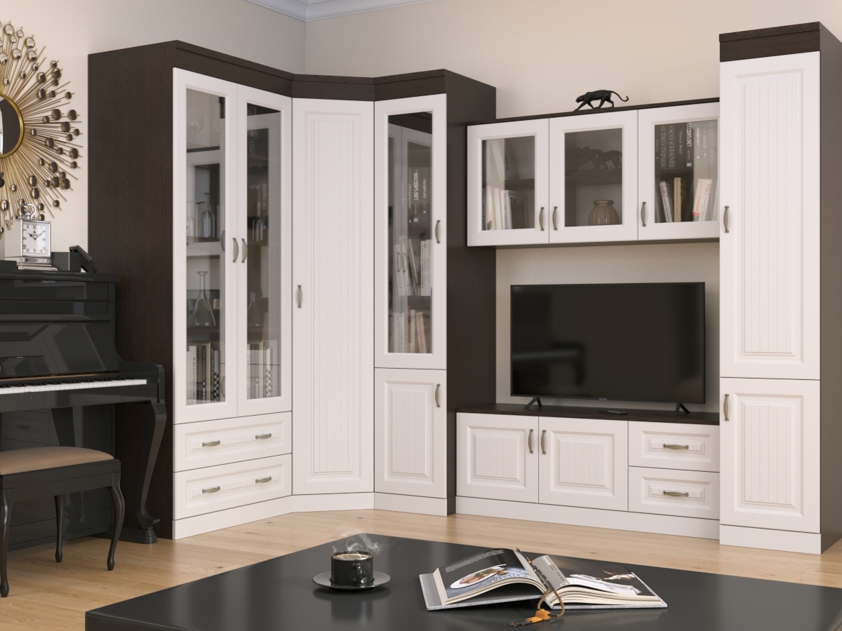 Изысканная Нинель-7 Стенка, изготовленная в классическом стиле, позволит наполнить комнату атмосферой уюта и комфорта. Стенка изготовлена из ламинированного ДСП, оборудована разнообразными полками, где можно разместить книги, элементы декора. Также предусмотрена тумба под телевизор, выдвижные ящики для хранения различных вещей. У нас можно заказать стенку различных цветов и размеров.