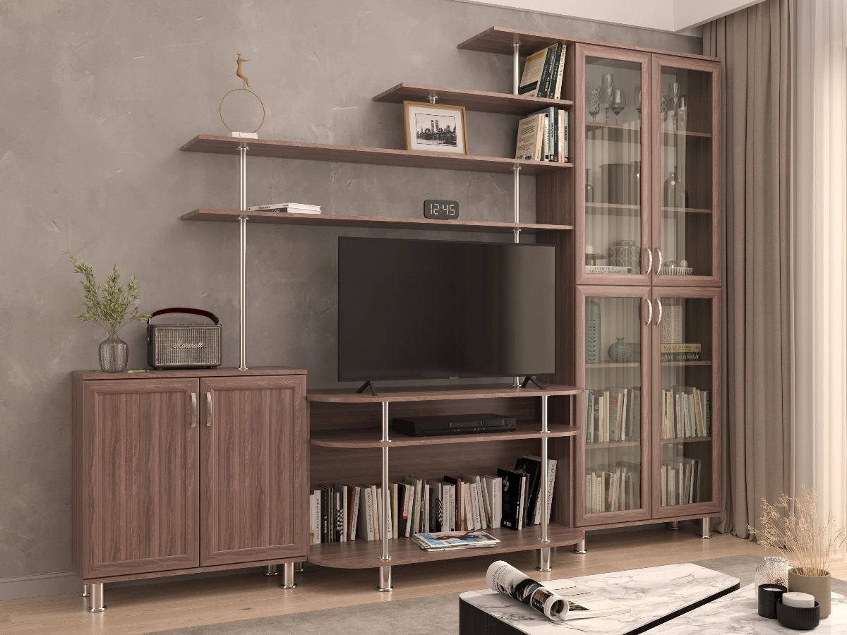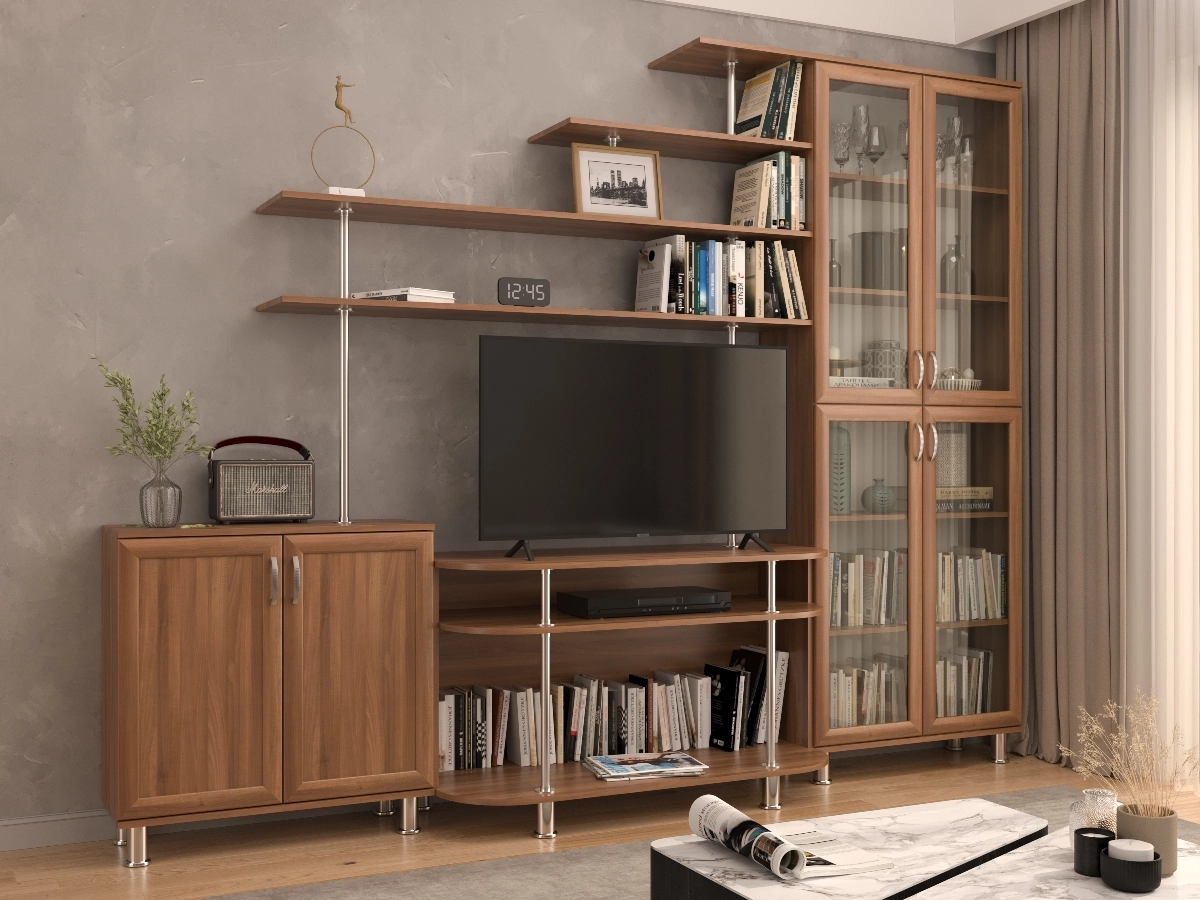 Изысканная Стенка Палермо-6, изготовленная в классическом стиле, позволит наполнить комнату атмосферой уюта и комфорта. Стенка оборудована разнообразными полками, где можно разместить книги, элементы декора. Также предусмотрена тумба под телевизор, выдвижные ящики для хранения различных вещей. У нас можно заказать стенку различных цветов и размеров.