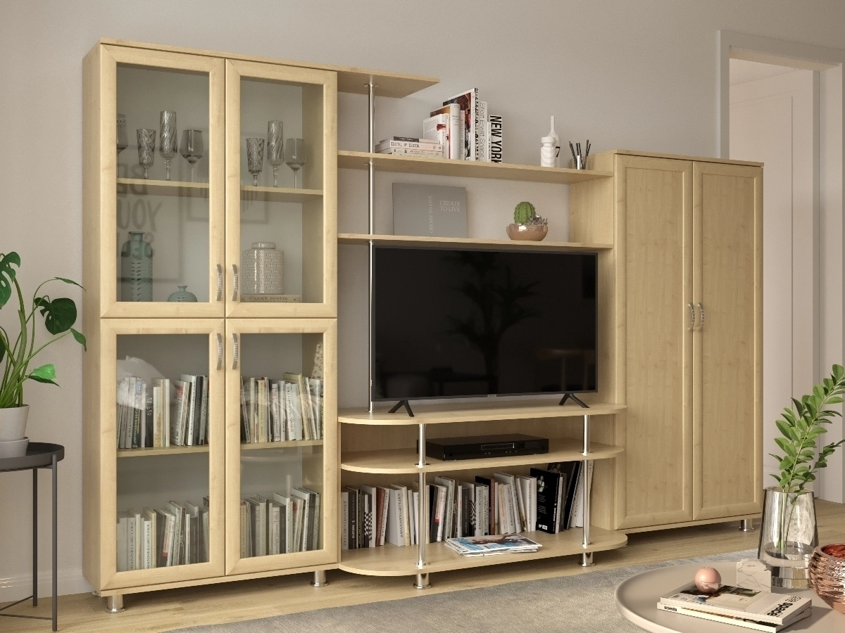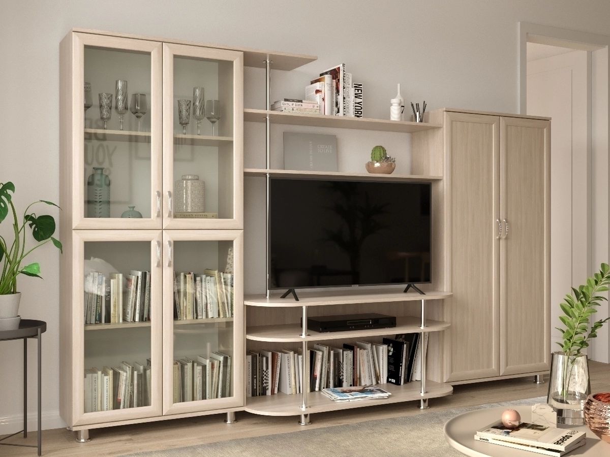 Шкаф со стеклянными дверцами: 800х1800х350 мм;Изысканная Стенка Санремо-4, изготовленная в классическом стиле, позволит наполнить комнату атмосферой уюта и комфорта. Стенка изготовлена из ламинированного ДСП, оборудована разнообразными полками, где можно разместить книги, элементы декора. Также предусмотрена тумба под телевизор, выдвижные ящики для хранения различных вещей. У нас можно заказать стенку различных цветов и размеров.