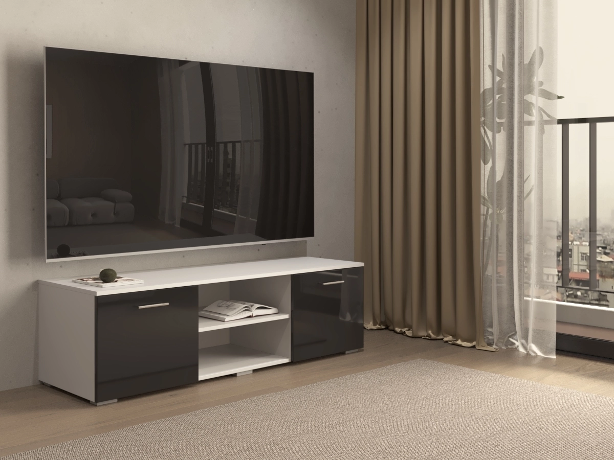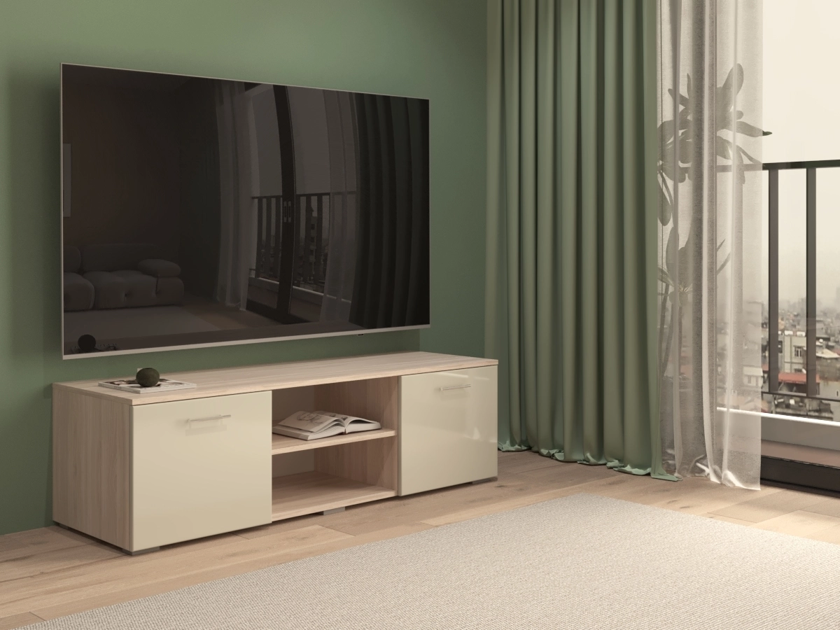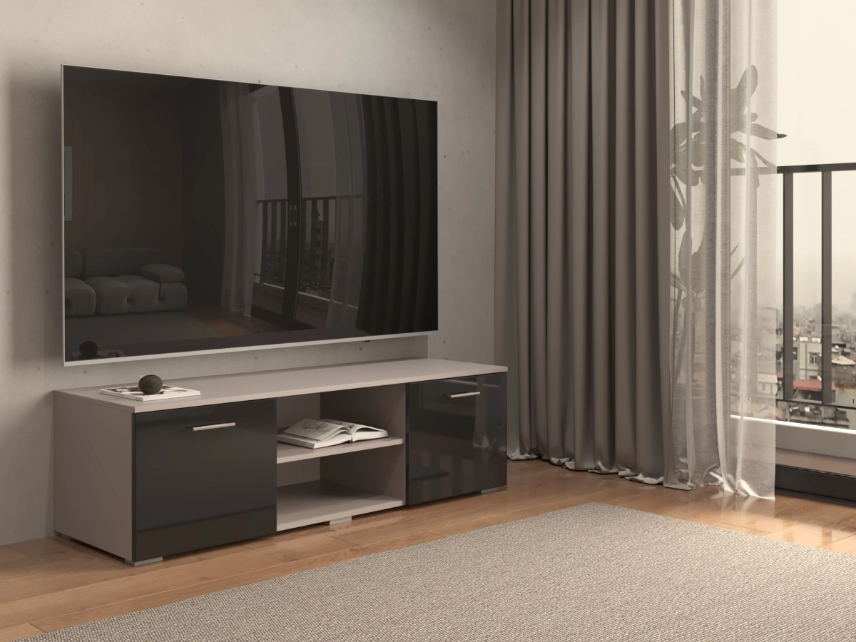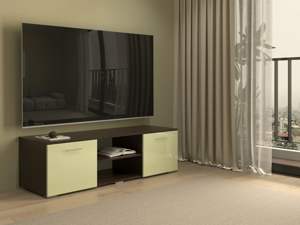 Тумбы под ТВ МДФ Блеск-10, отличающаяся компактностью и высокой функциональностью. Она изготовлена в лаконичном стиле, оснащена полками и ящиками. Тумба позволит удобно разместить современный телевизор большой диагонали и всю необходимую технику.