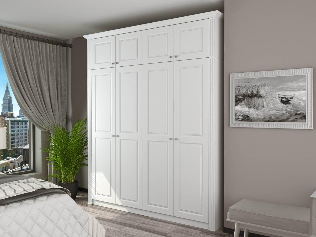 Шкаф имеет четыре распашные двери с фрезеровкой "Жасмин", благодаря чему он будет выглядеть благородно и респектабельно в вашем интерьере. Возможность выбора наполнения поможет прекрасно разместить в нем все необходимые вещи. Одно из главных достоинств этой модели - наличие дополнительной антресоли для ещё большей функциональности и вместимости.