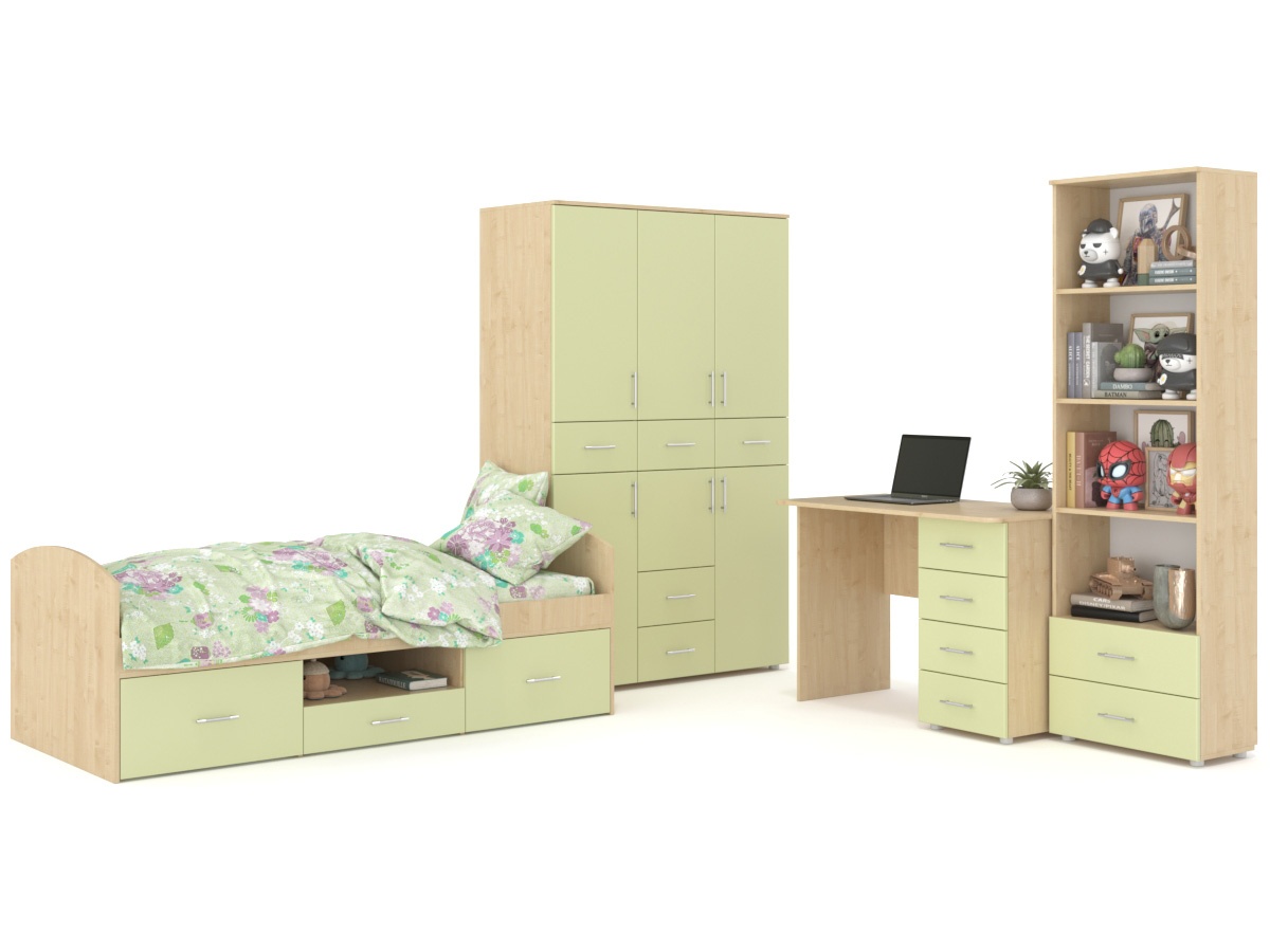 Детская стенка Глори 2 - идеально подойдет для установки в комнату подростка. Шкаф-стенка имеет много разных ящиков и шкафов, он очень вместителен. Пенал представлен выдвижными ящиками и открытыми полками, где можно разложить книги и учебники. Компьютерный стол оснащен тумбой для ученических принадлежностей. Есть отдельная навесная полка, шикарная кровать с выдвижными ящиками.