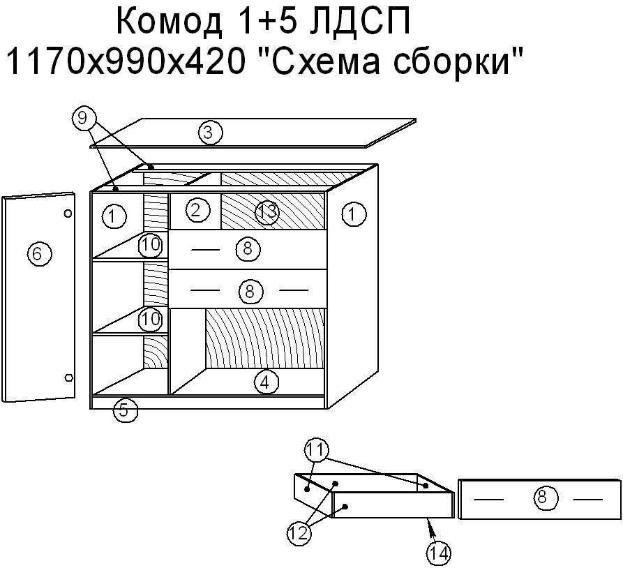 Комод 1.5 ЛДСП – мебельный предмет, представленный в виде пяти выдвижных ящиков и шкафа с одной створкой. Простой и элегантный комод станет украшением гостиной или спальной.