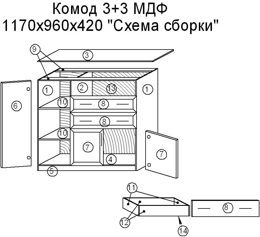 Комод 3.3 ЛДСП – комплект комода представлен тремя ящиками, нижним шкафом с двумя створками и одностворчатым шкафом. Мебель идеально впишется в интерьер спальной комнаты. Одежда и разные аксессуары раскладываются упорядоченно.