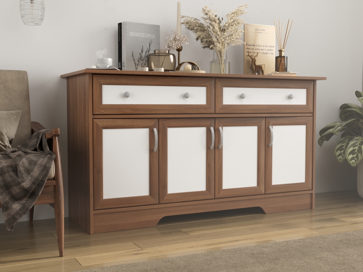 Комод Стенворд 21 – модель комода с ящиками и шкафами. Добавляет в комнату романтики и идеально подходит для спальной или гостиной. Внутри можно разложить много предметов и вещей, а сверху разместится настольная лампа и другие элементы декора. Надежный и прочный вариант комода подойдет для различных интерьеров.