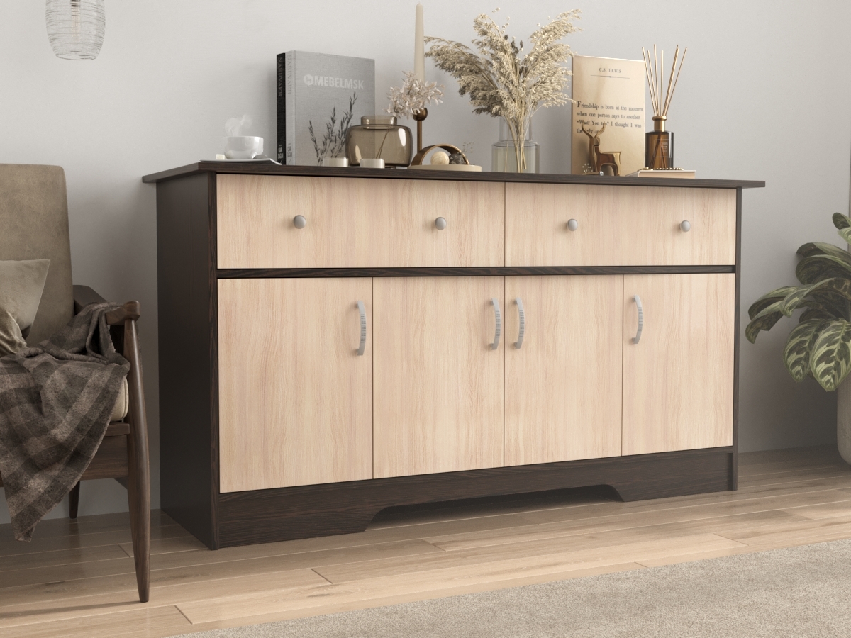Комод Стенворд 22 – большой универсальный комод, состоящий из шкафов и ящиков. Он станет стильным и функциональным дополнением вашего дома. В комоде достаточно места для хранения домашних и личных вещей, таких как документы, журналы, одежда и многое другое. Идеально подходит для использования в качестве выразительного украшения комнаты.