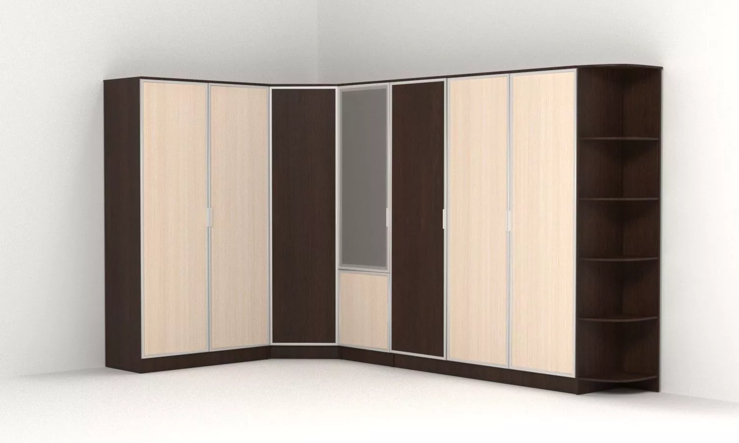 Набор шкафов НКМ №20 - большой набор шкафов, в котором представлены двухстворчатый шкаф, шкаф с тремя дверцами, один угловой, модуль с полками закрытого типа, угловой элемент с открытыми полками. Это красивая эффектная модель, которая станет полноценным мебельным предметом в создании хранилища для вещей. Установив эти шкафы, не нужно использовать другую мебель.