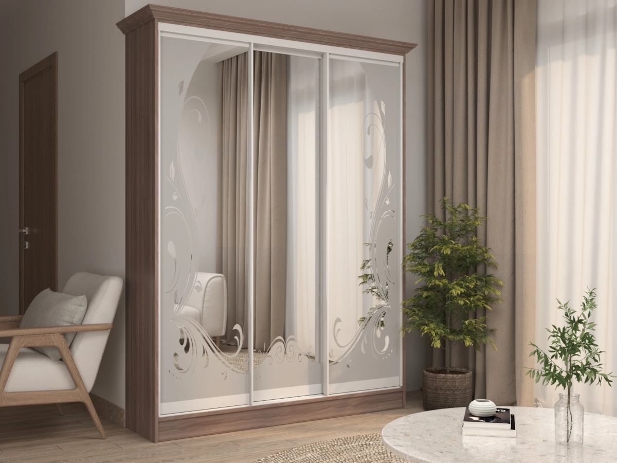Шкаф-купе Концепт 26 – мебель, которая может быть установлена в различных комнатах. При ее виде можно ощутить легкость и непринужденность. Практичная модель имеет великолепный пескоструйный рисунок. Массивный шкаф невероятно вместительный, все вещи можно разложить по местам.