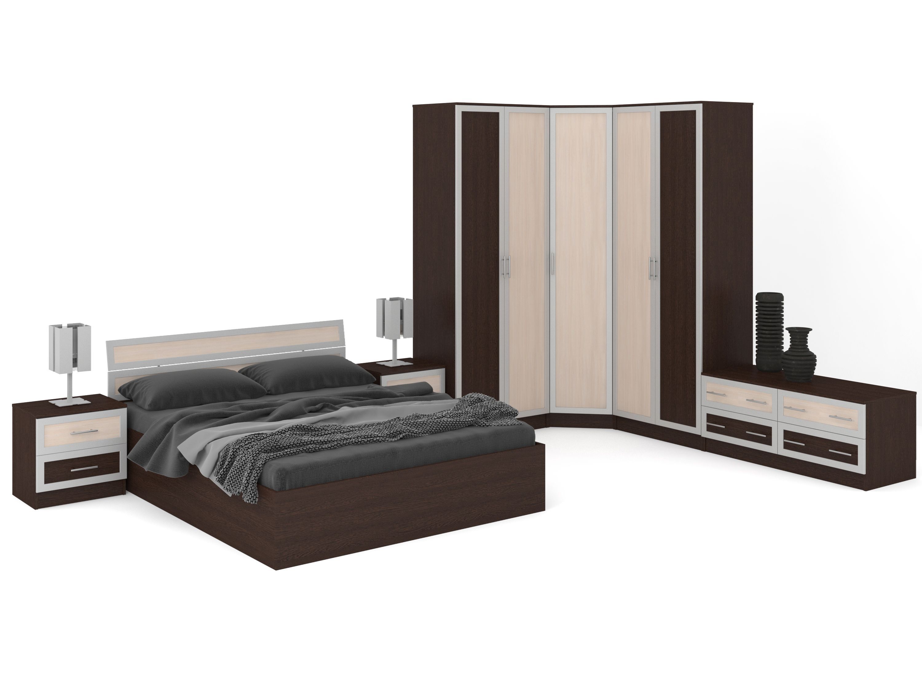 Спальный гарнитур Аврелия 9 – мебельный гарнитур с двумя прикроватными тумбами, двухспальной кроватью, низким комодом с ящиками и большим и вместительным угловым шкафом. Простой, но элегантный дизайн этого спального гарнитура в современном стиле украсит любую спальню.