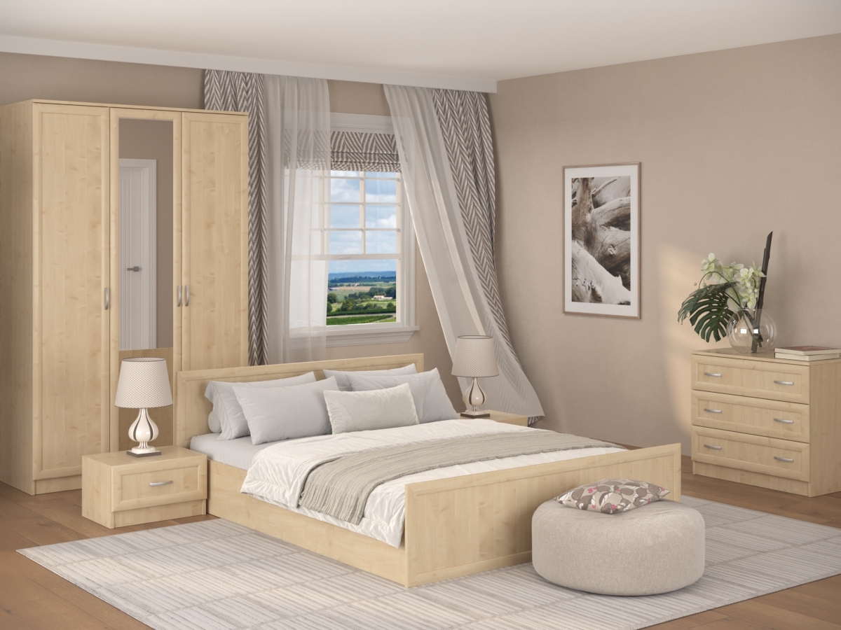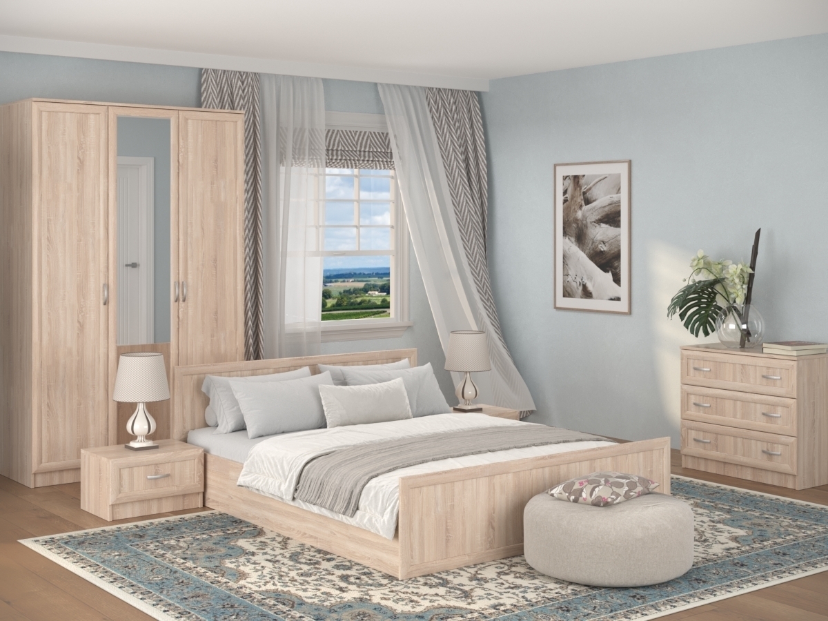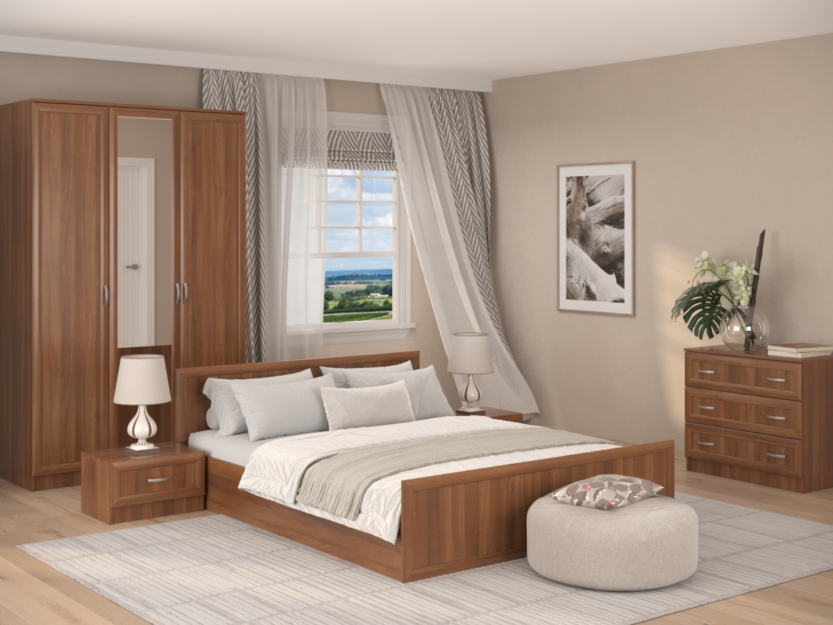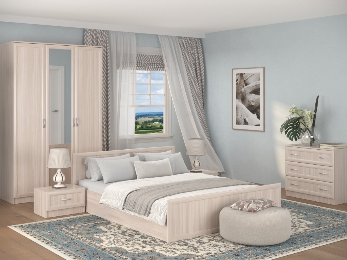 Спальный гарнитур «Лира 4.1» это хороший выбор для тех, кто хочет оформить спальню в современном стиле. Одежду можно будет сложить в комод и трёхдверный шкаф. Фасады всех предметов в наборе сделаны в рамке МДФ, выглядят выразительно и глубоко. Чтобы купить Спальный гарнитур «Лира 4.1» по выгодным ценам, достаточно заполнить заявку на нашем сайте или позвонить по телефону 8 (495) 740-75-18