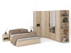 Спальный гарнитур Светлана 30 – если посмотреть на эту мебель, то она функциональная и представлена несколькими предметами. Гарнитур состоит из прикроватных тумбочек, кровати и угловой системы из шкафов. Специальное место для сна представлено в виде двуспальной кровати. Модель мебели наполнит помещение ярким светом.