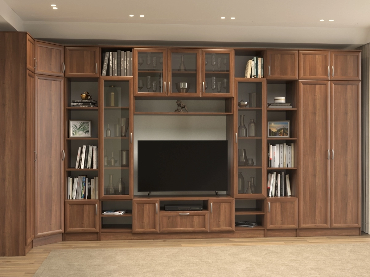 Изысканная Стенка Эльвира-5, изготовленная в классическом стиле, позволит наполнить комнату атмосферой уюта и комфорта. Стенка изготовлена из ламинированного ДСП, оборудована разнообразными полками, где можно разместить книги, элементы декора. Также предусмотрена тумба под телевизор, выдвижные ящики для хранения различных вещей. У нас можно заказать стенку различных цветов и размеров.