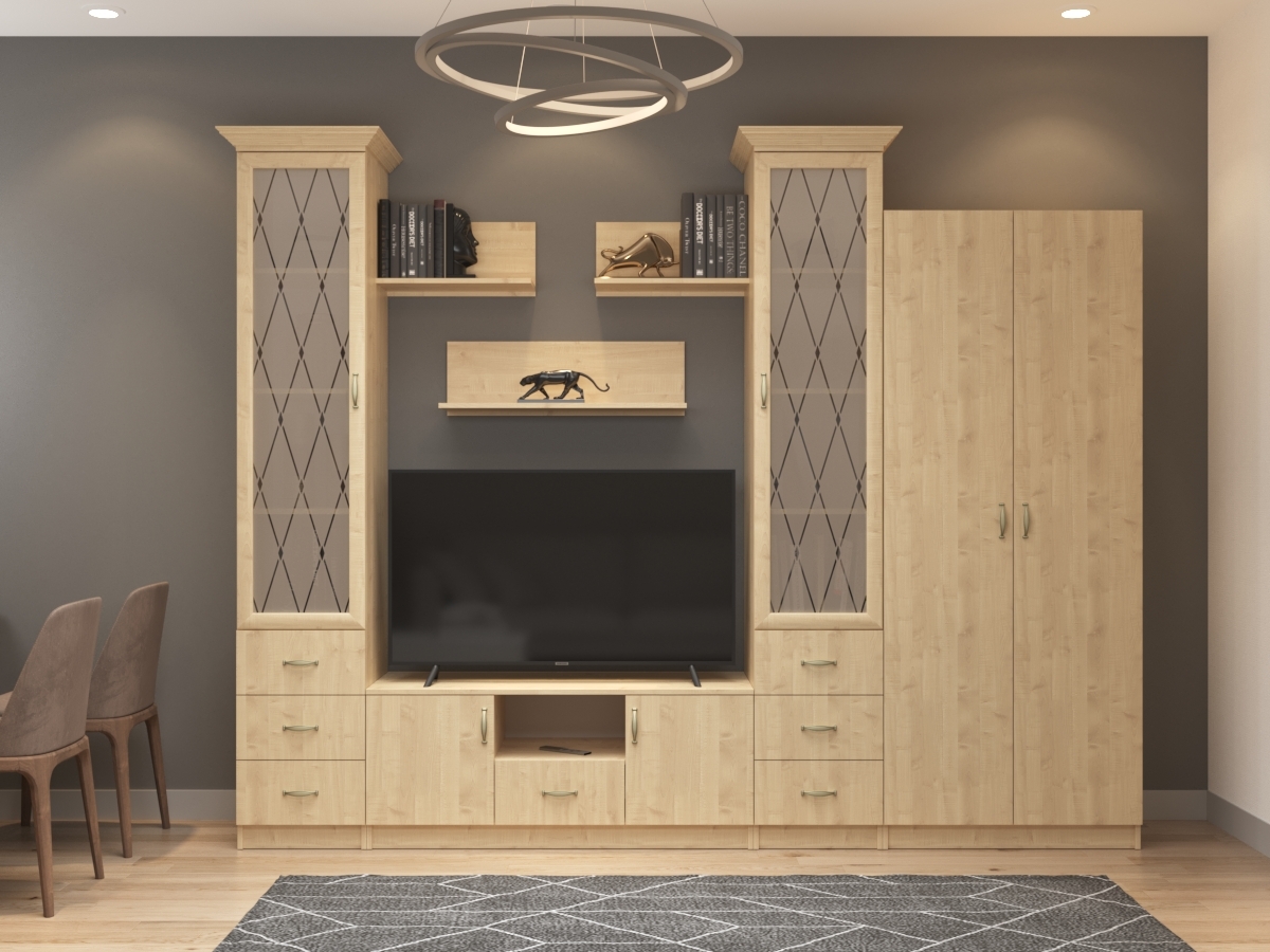 Изысканная Стенка Легенда-3, изготовленная в классическом стиле, позволит наполнить комнату атмосферой уюта и комфорта. Стенка оборудована разнообразными полками, где можно разместить книги, элементы декора. Также предусмотрена тумба под телевизор, выдвижные ящики для хранения различных вещей. У нас можно заказать стенку различных цветов и размеров.