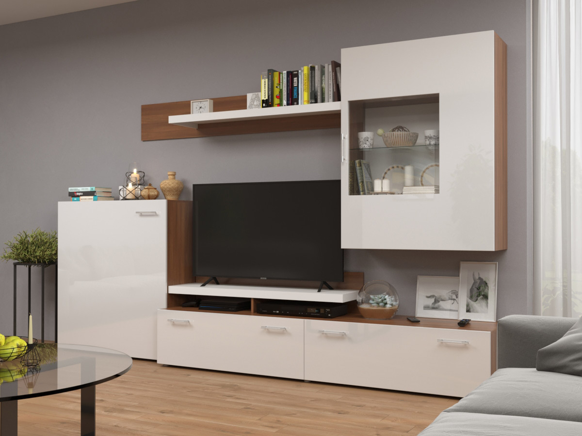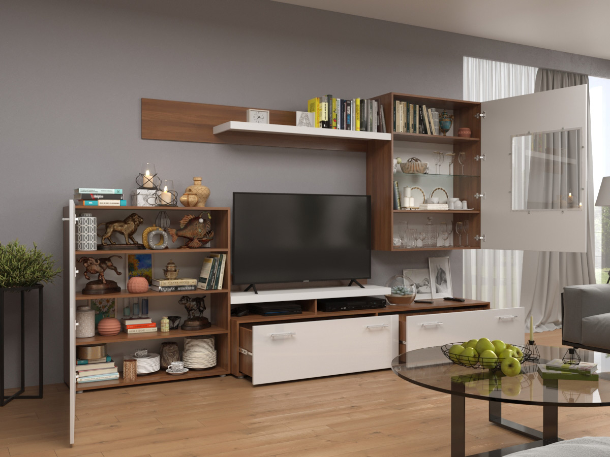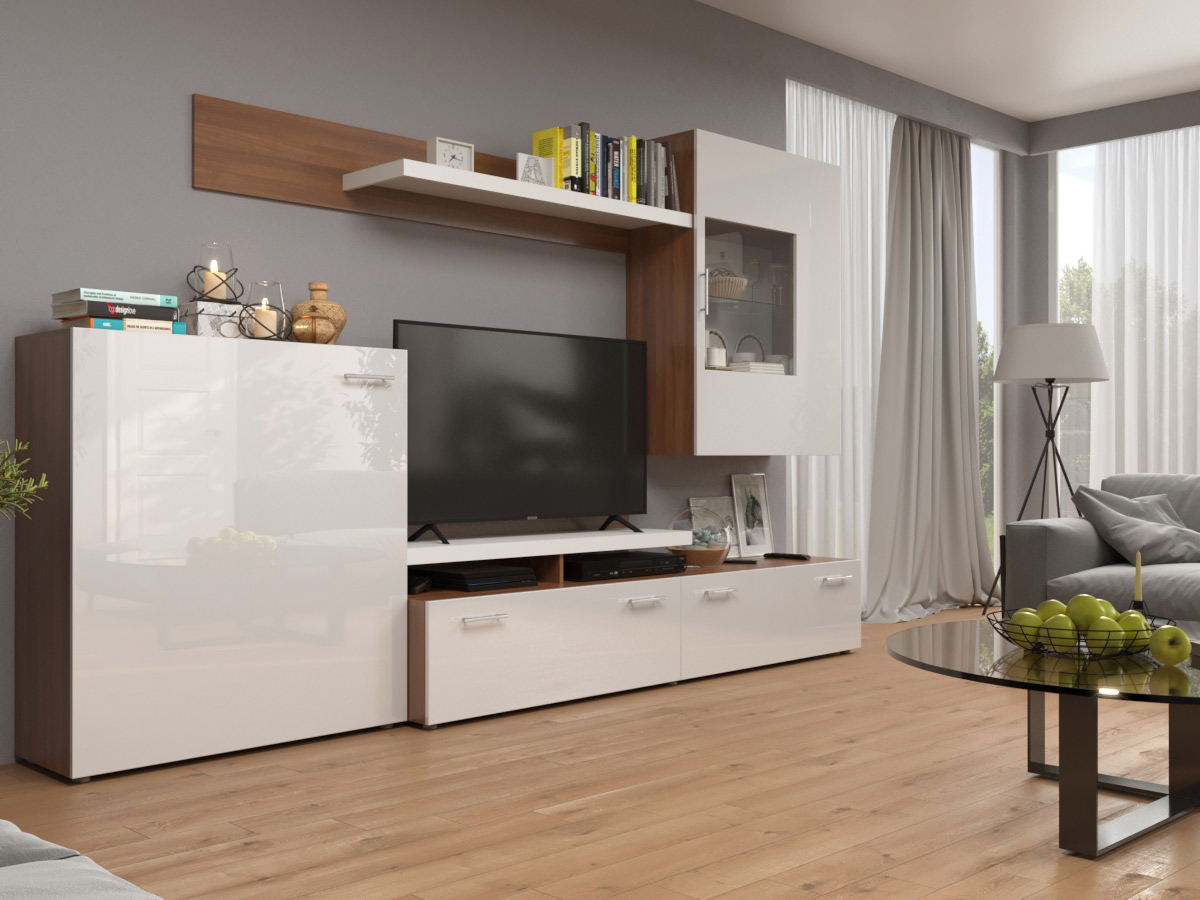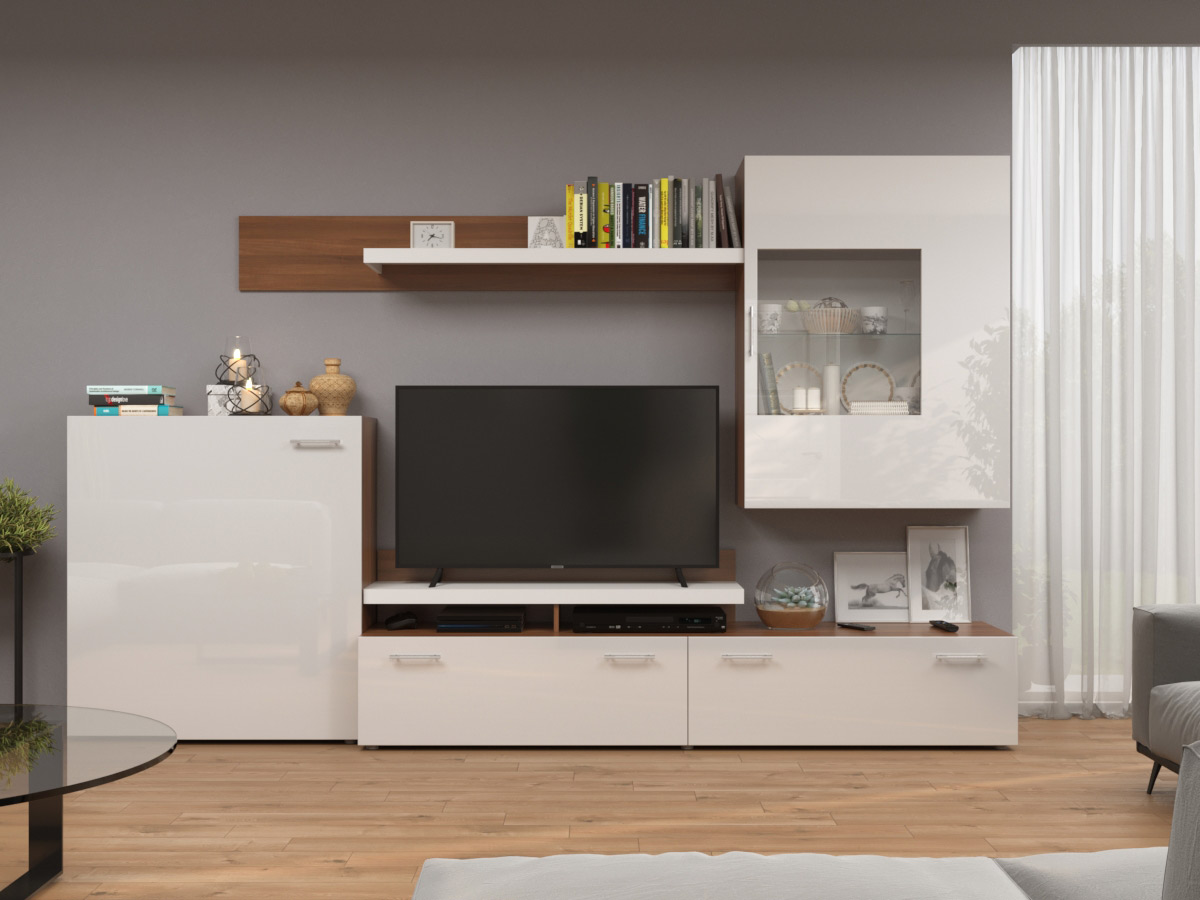 Изысканная современная Стенка МДФ Глянец 7, изготовленная в стиле минимализм, позволит наполнить комнату атмосферой уюта и комфорта. Стенка изготовлена из ламинированного ДСП и фасад МДФ, оборудована разнообразными полками, где можно разместить книги, элементы декора. Также предусмотрена тумба под телевизор, выдвижные ящики для хранения различных вещей. У нас можно заказать стенку различных цветов и размеров.