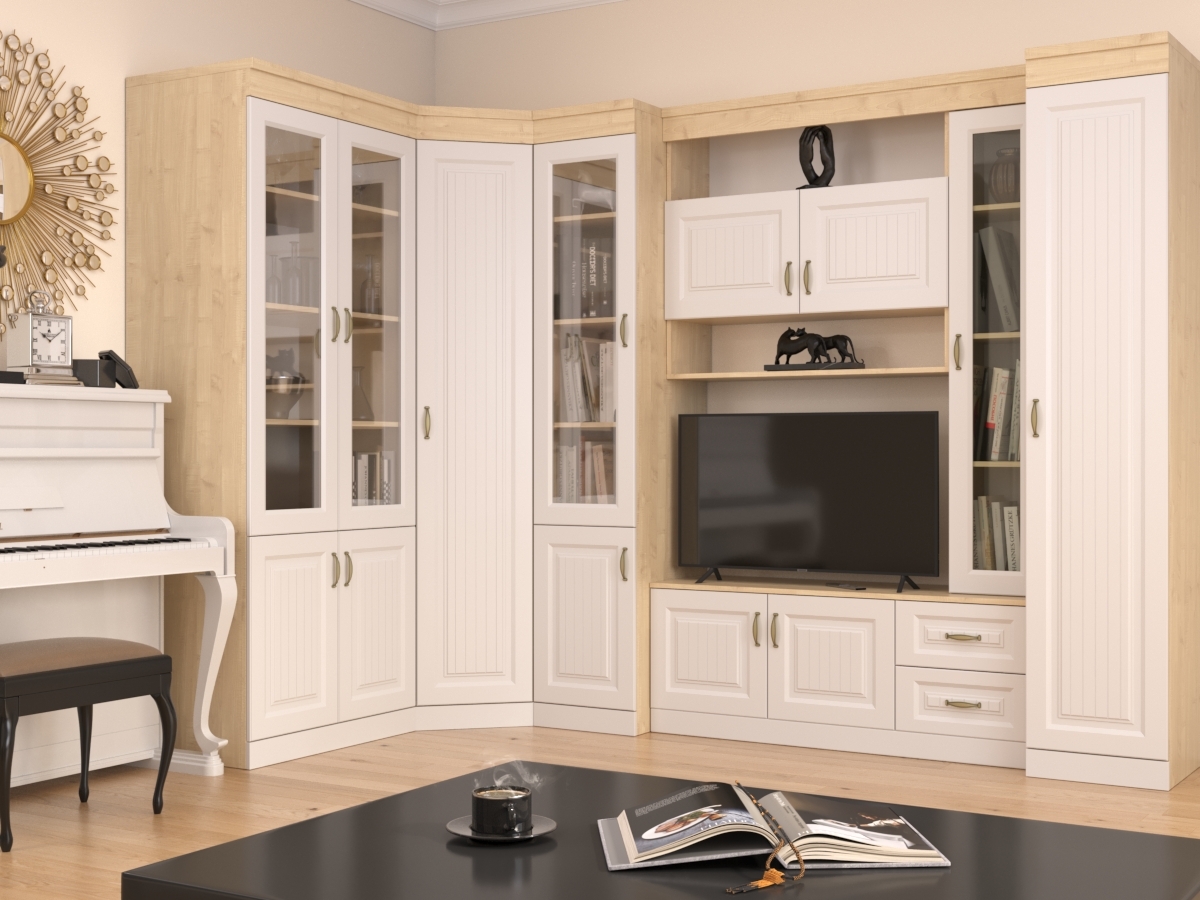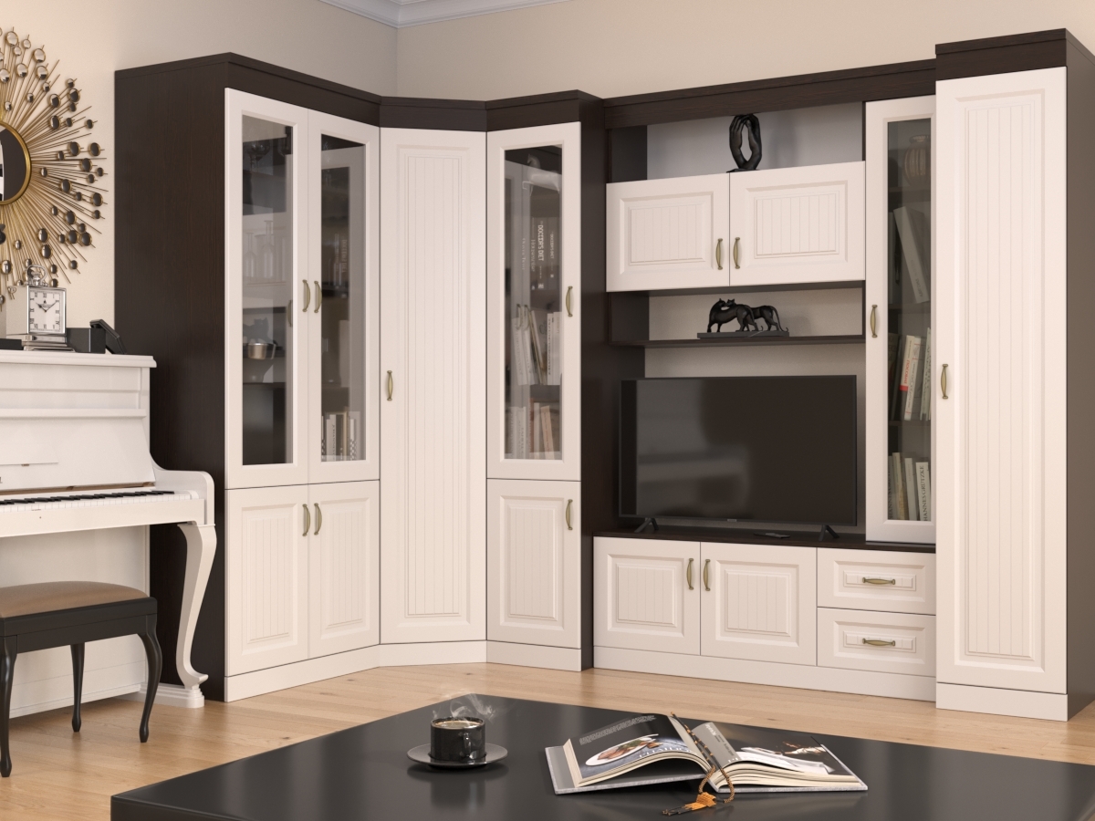 Изысканная Нинель-8 Стенка, изготовленная в классическом стиле, позволит наполнить комнату атмосферой уюта и комфорта. Стенка изготовлена из ламинированного ДСП и МДФ, оборудована разнообразными полками, где можно разместить книги, элементы декора. Также предусмотрена тумба под телевизор, выдвижные ящики для хранения различных вещей. У нас можно заказать стенку различных цветов и размеров.