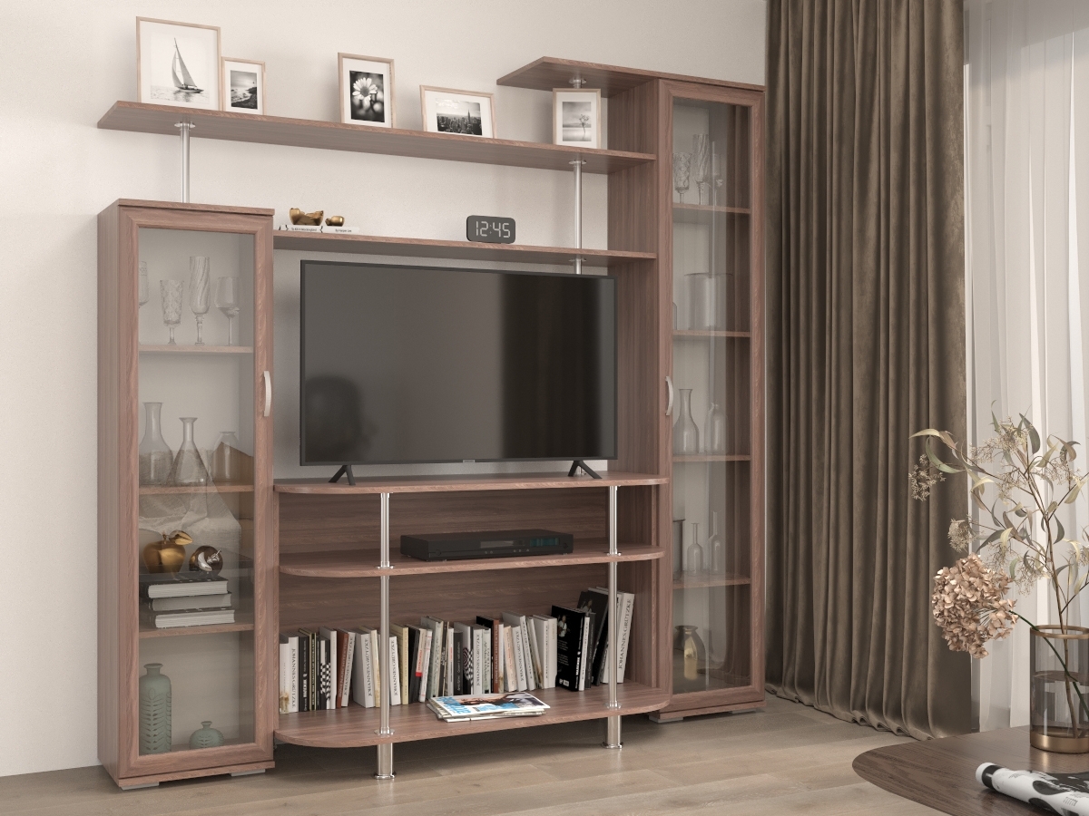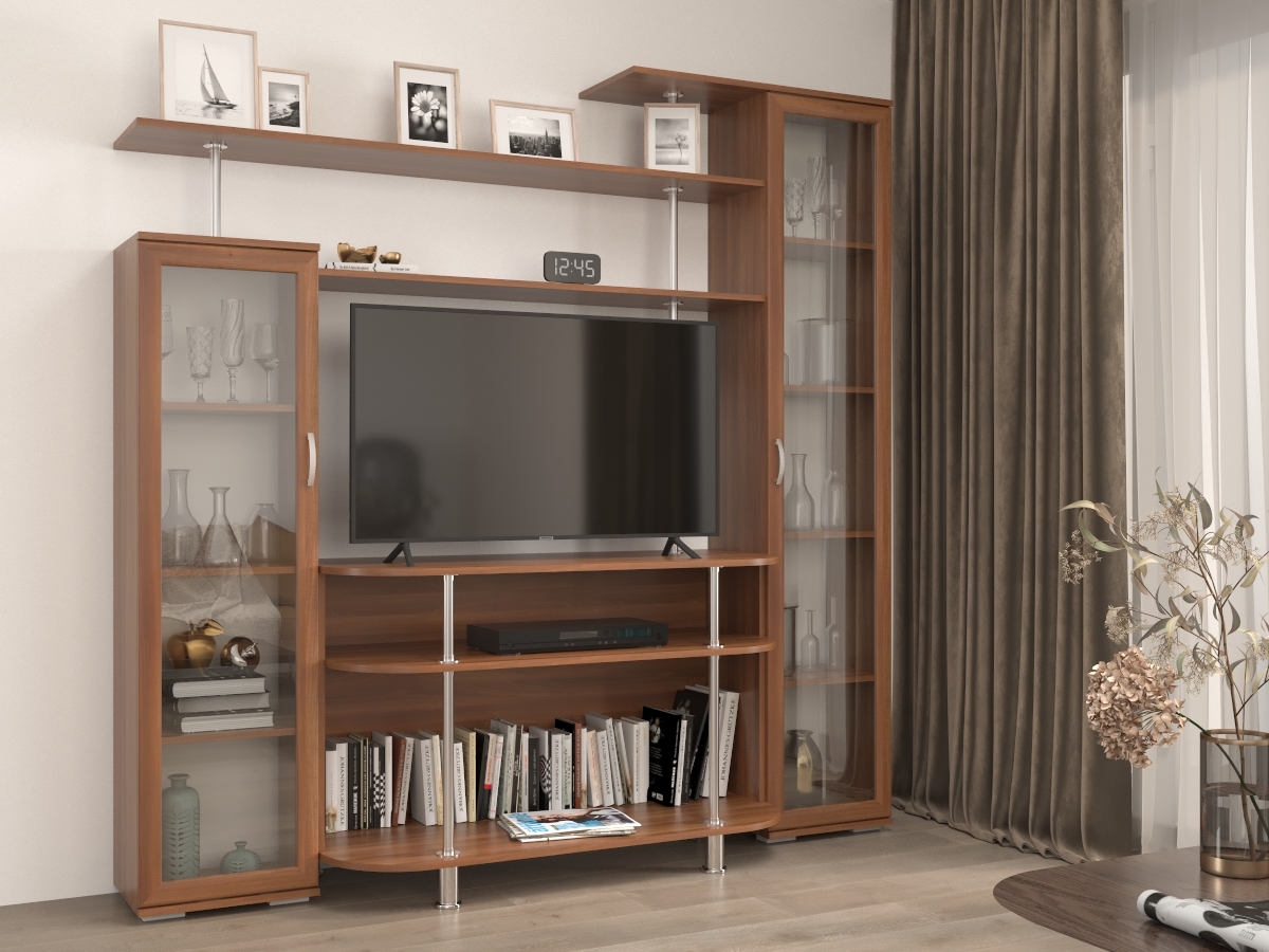 Изысканная Стенка Палермо-3, изготовленная в классическом стиле, позволит наполнить комнату атмосферой уюта и комфорта. Стенка оборудована разнообразными полками, где можно разместить книги, элементы декора. Также предусмотрена тумба под телевизор. У нас можно заказать стенку различных цветов и размеров.