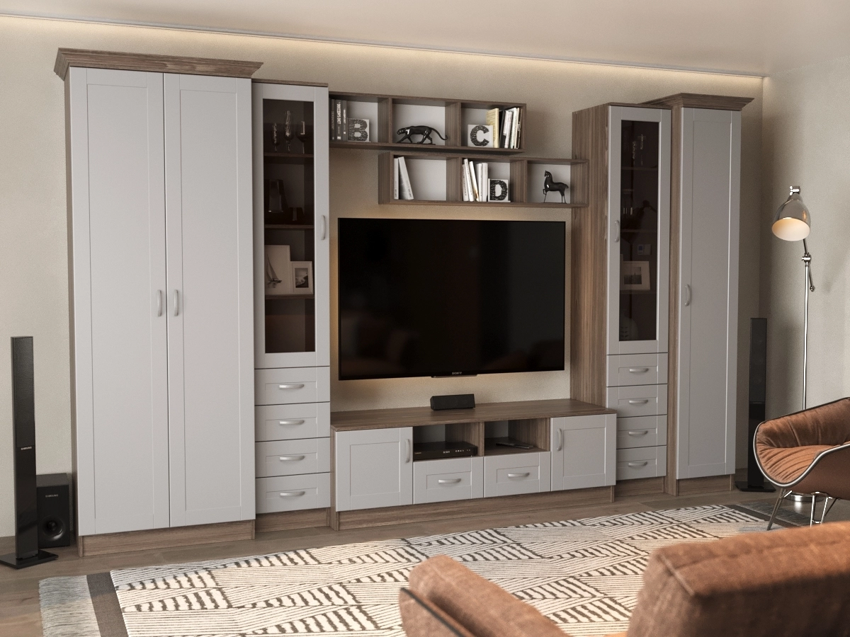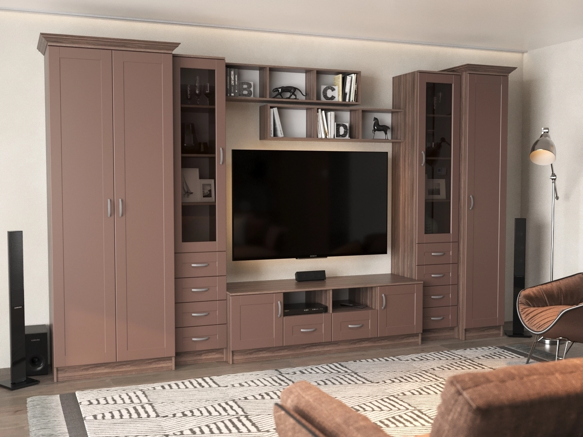 Изысканная Премьера - 1 Стенка, изготовленная в стиле современной классики, позволит наполнить комнату атмосферой уюта и комфорта. Стенка оборудована разнообразными полками, где можно разместить книги, элементы декора. Также предусмотрена тумба под телевизор, выдвижные ящики для хранения различных вещей. У нас можно заказать стенку различных цветов и размеров.