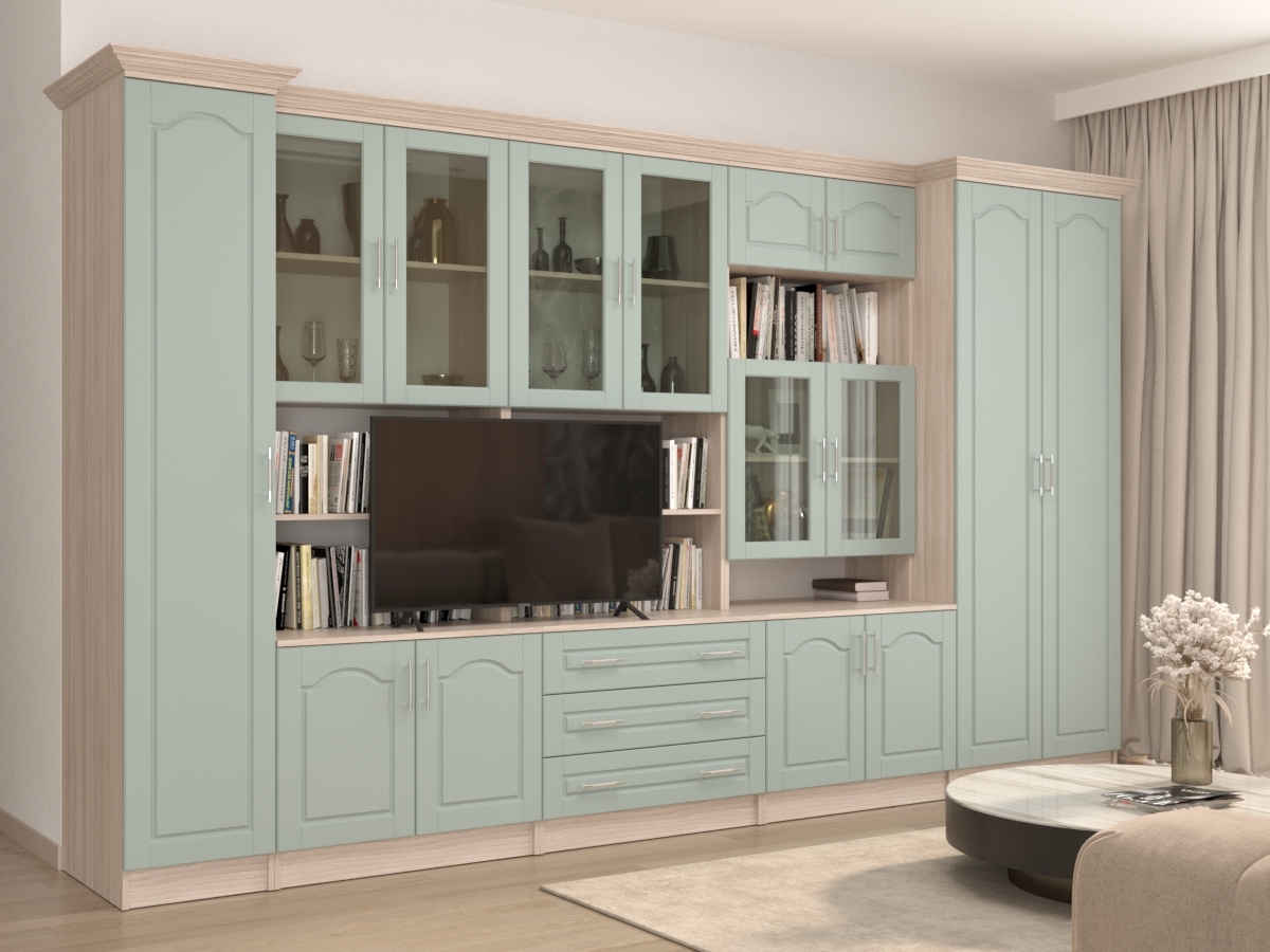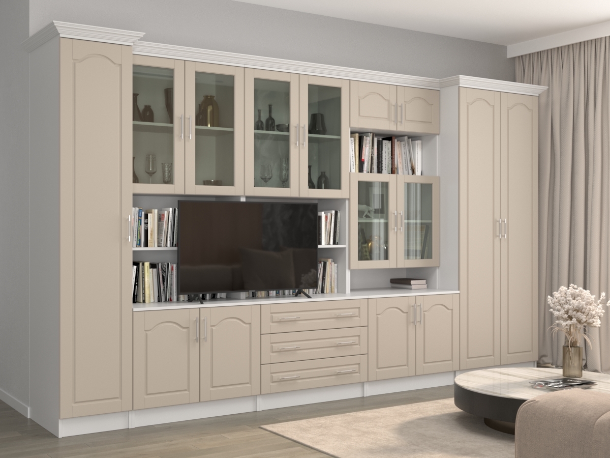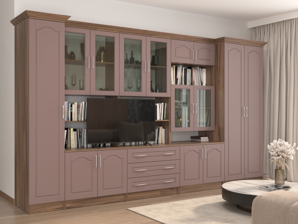 Пенал:400x2100x560 ммИзысканная Президент МДФ2+1 Стенка, изготовленная в классическом стиле, позволит наполнить комнату атмосферой уюта и комфорта. Стенка изготовлена из ламинированного ДСП и МДФ, оборудована разнообразными полками, где можно разместить книги, элементы декора. Также предусмотрена тумба под телевизор, выдвижные ящики для хранения различных вещей. У нас можно заказать стенку различных цветов и размеров.