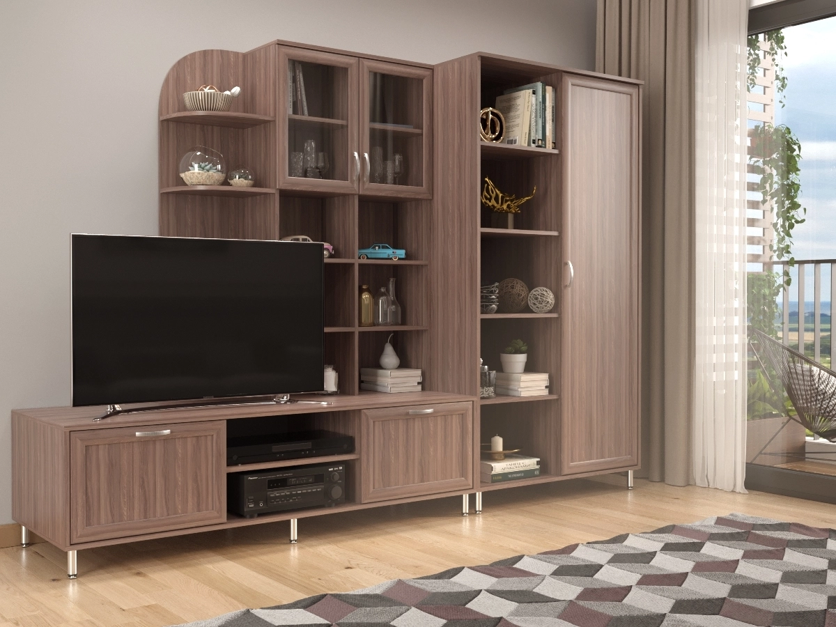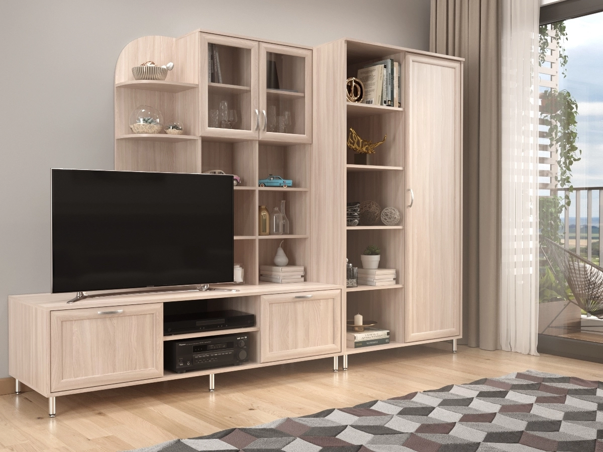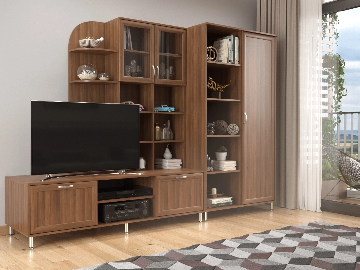 Изысканная Рио-2 Стенка позволит наполнить комнату атмосферой уюта и комфорта. Стенка оборудована разнообразными полками, где можно разместить книги, элементы декора. Также предусмотрена тумба под телевизор, и комбинированный стеллаж для вещей. У нас можно заказать стенку различных цветов и размеров.